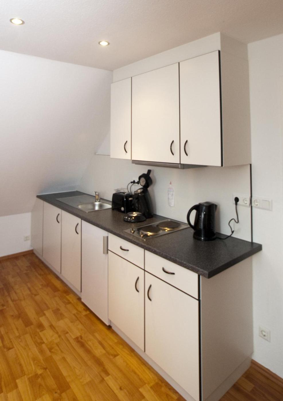 Einige Wohneinheiten haben außerdem eine Küche ausgestattet mit einem Kühlschrank, einem Geschirrspüler und einer Mikrowelle.