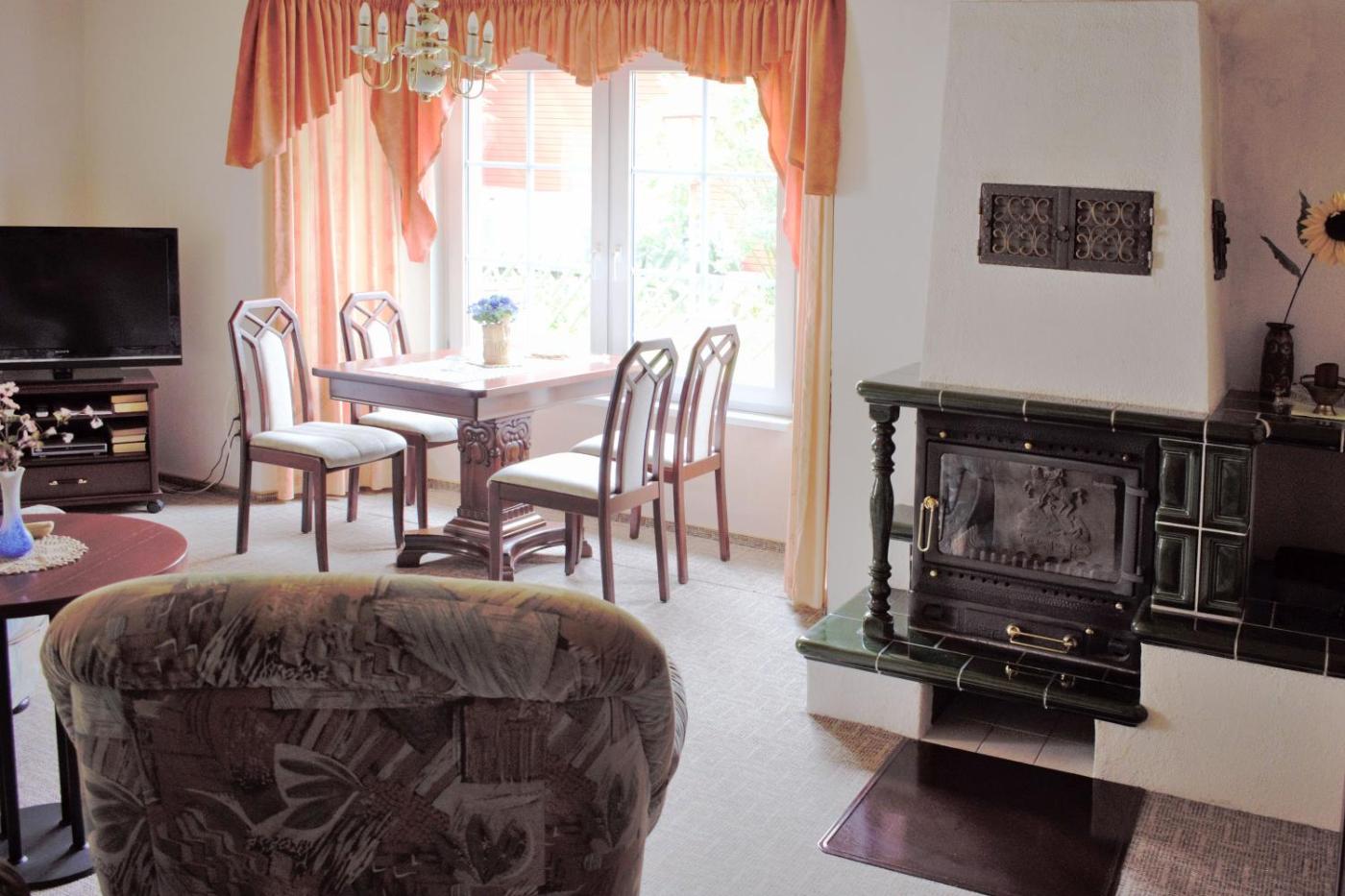 Apartment mit 2 Schlafzimmern. This apartments special feature is the fireplace. Featuring a private entrance, this spacious apartment also comprises 2 bedrooms, a seating area and 1 bathroom with a shower and a hairdryer. Guests will find a stovetop, a refrigerator, kitchenware and an oven in the fully equipped kitchen. The apartment also provides guests with a barbecue. Boasting a terrace with garden views, this apartment also provides a coffee machine and a flat-screen TV with satellite channels. The unit offers 2 beds.