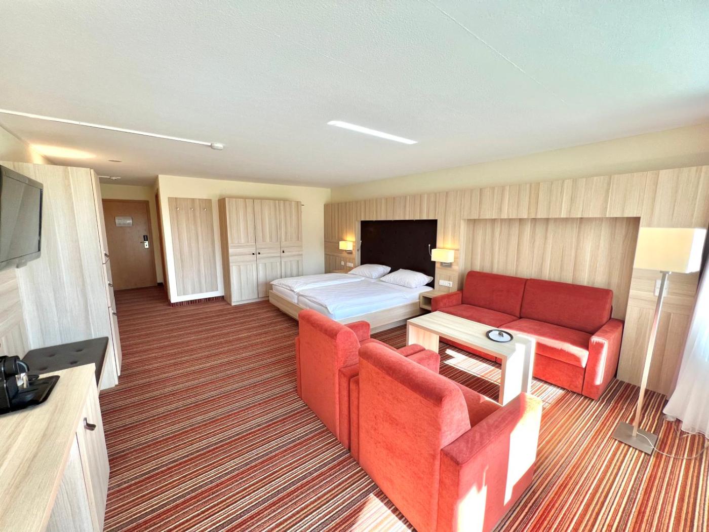Superior Zimmer mit Kingsize-Bett oder 2 Einzelbetten. The spacious twin room features soundproof walls, a tea and coffee maker, a balcony with garden views as well as a private bathroom boasting a shower. The unit has 1 bed. ;