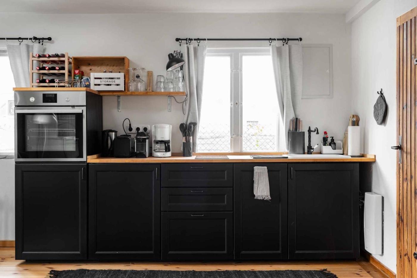 Die Gäste in der Unterkunft Pommernhaus Bay Cabin, Kamin, SUPs können in der Nähe Fahrradfahren oder vor Ort den Garten nutzen.