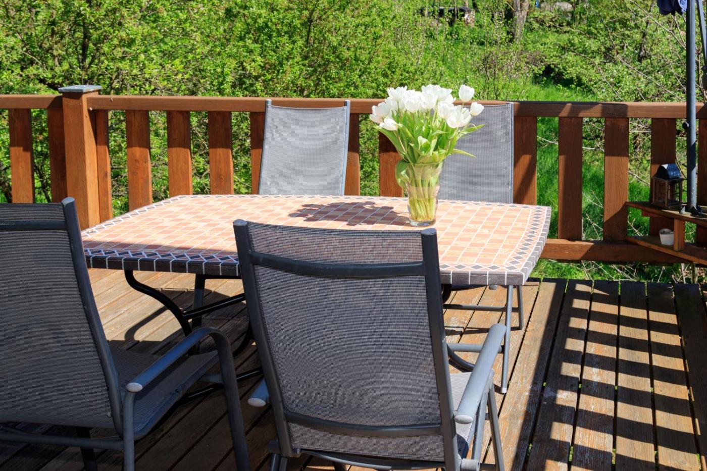 Apartment mit Terrasse. This apartment features an exclusive wooden terrace and fully furnished interiors, including a fully equipped kitchen.