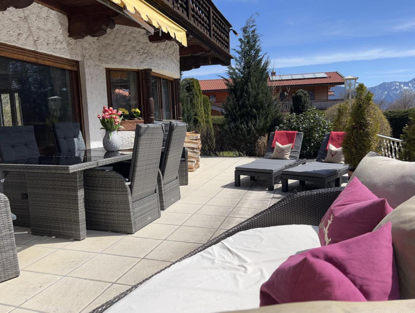 Alpen Suite Tegernsee - große Sonnenterasse und idyllischer Garten