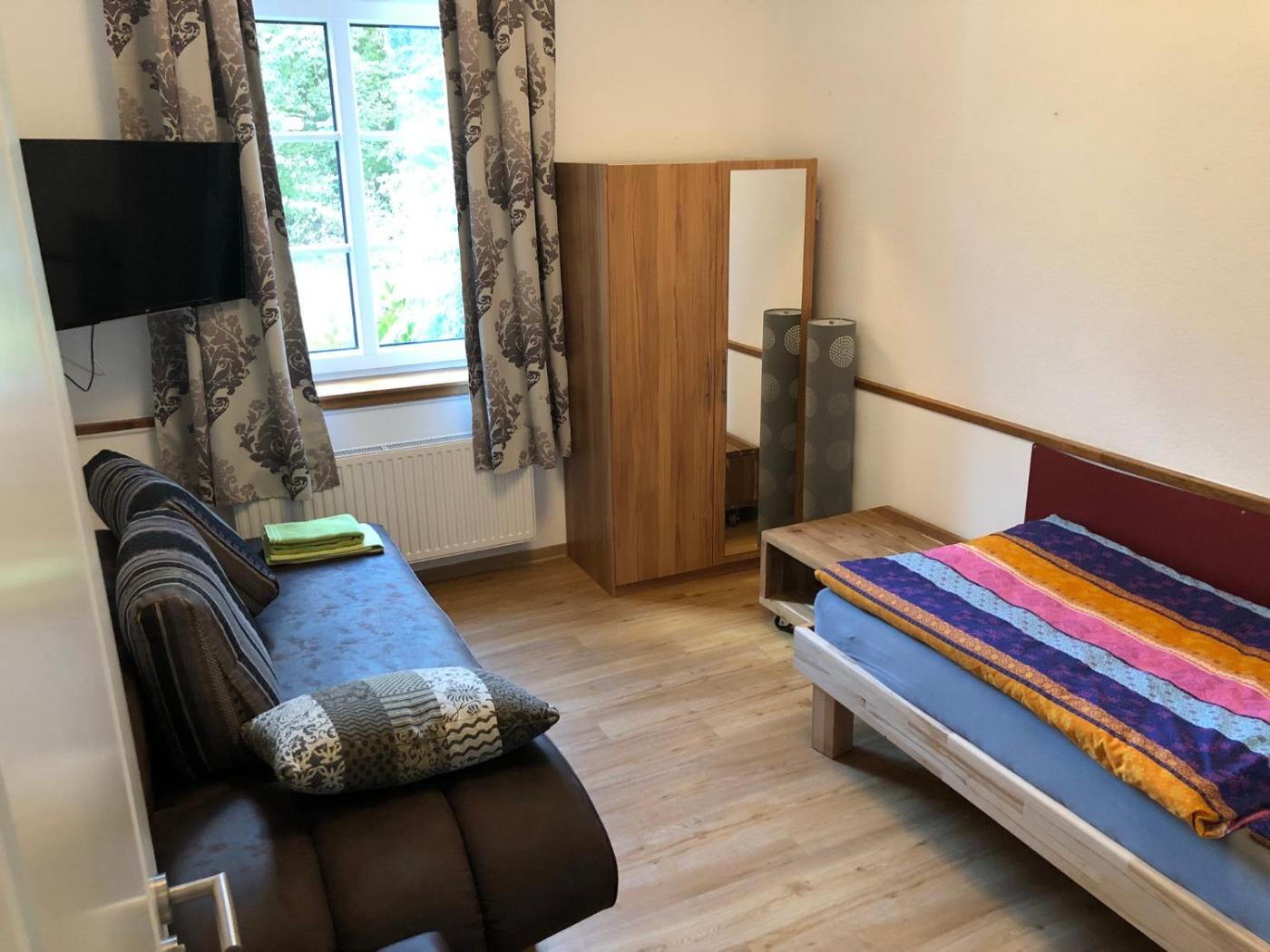 Einzelzimmer. Guests can make meals in the kitchenette that is equipped with a refrigerator, kitchenware, a microwave and an electric kettle. This single room includes a flat-screen TV with satellite channels and a shared bathroom. The unit offers 1 bed.