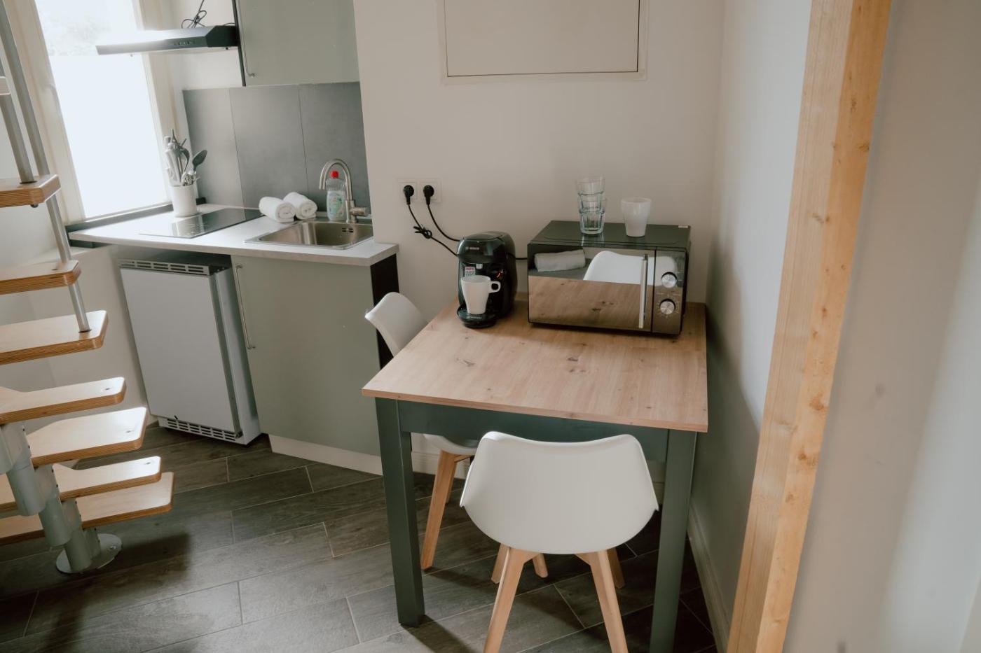 Deluxe Studio. Dieses Studio umfasst ein eigenes Bad mit einer Dusche, einem Haartrockner und kostenlosen Pflegeprodukten. In der komplett ausgestatteten Küchenzeile erwarten Sie ein Kochfeld, ein Kühlschrank, Küchenutensilien und eine Mikrowelle. Das Studio bietet zudem eine Kaffeemaschine, einen Sitzbereich, ein Sofa, eine Heizung sowie einen Flachbild-TV. Die Wohneinheit ist mit 4 Betten ausgestattet. ;