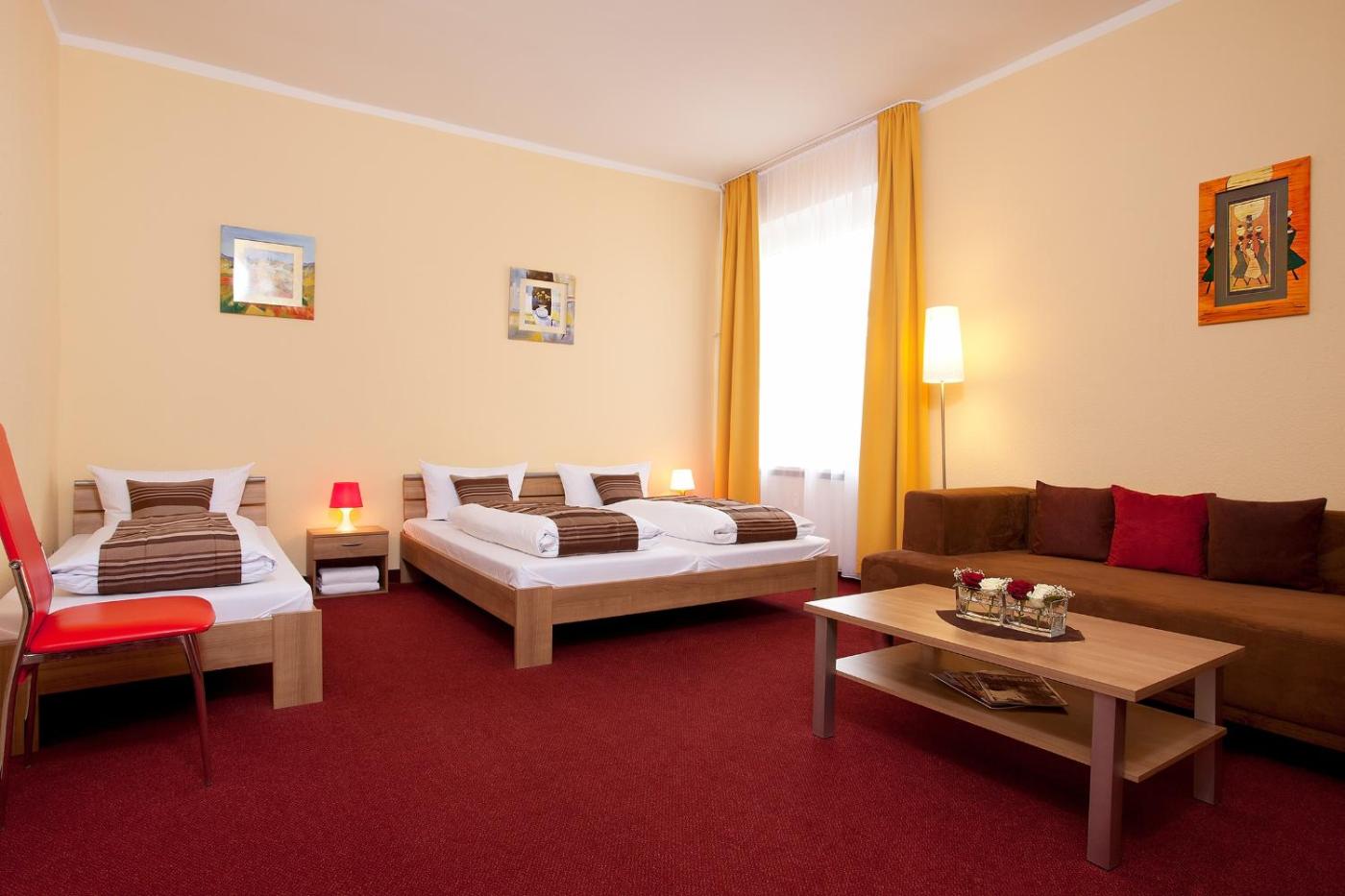 Familienapartment. Dieses Apartment im klassischen Stil verfügt über einen kombinierten Schlaf-Wohnbereich mit einem Doppelbett, einem Einzelbett und einem Schlafsofa. Eine Küchenzeile und ein Bad mit einem Haartrockner sind ebenfalls vorhanden. Bitte beachten Sie, dass der angegebene Preis für 4 Gäste gilt. Die Maximalbelegung beträgt 5 Personen (siehe Hotelrichtlinien). ;