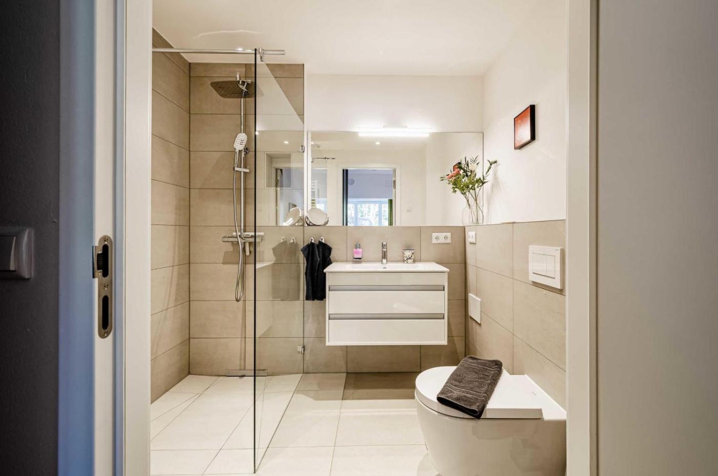 Apartment mit Terrasse. Boasting 2 bedrooms, this spacious apartment has 2 bathrooms with a hairdryer, a seating area and terraceyou can relax. In the kitchen, guests will find a refrigerator, a dishwasher, an oven and a microwave. Featuring an outdoor dining area, this apartment also offers a washing machine, a coffee machine and a TV with cable channels. The unit offers 2 beds.