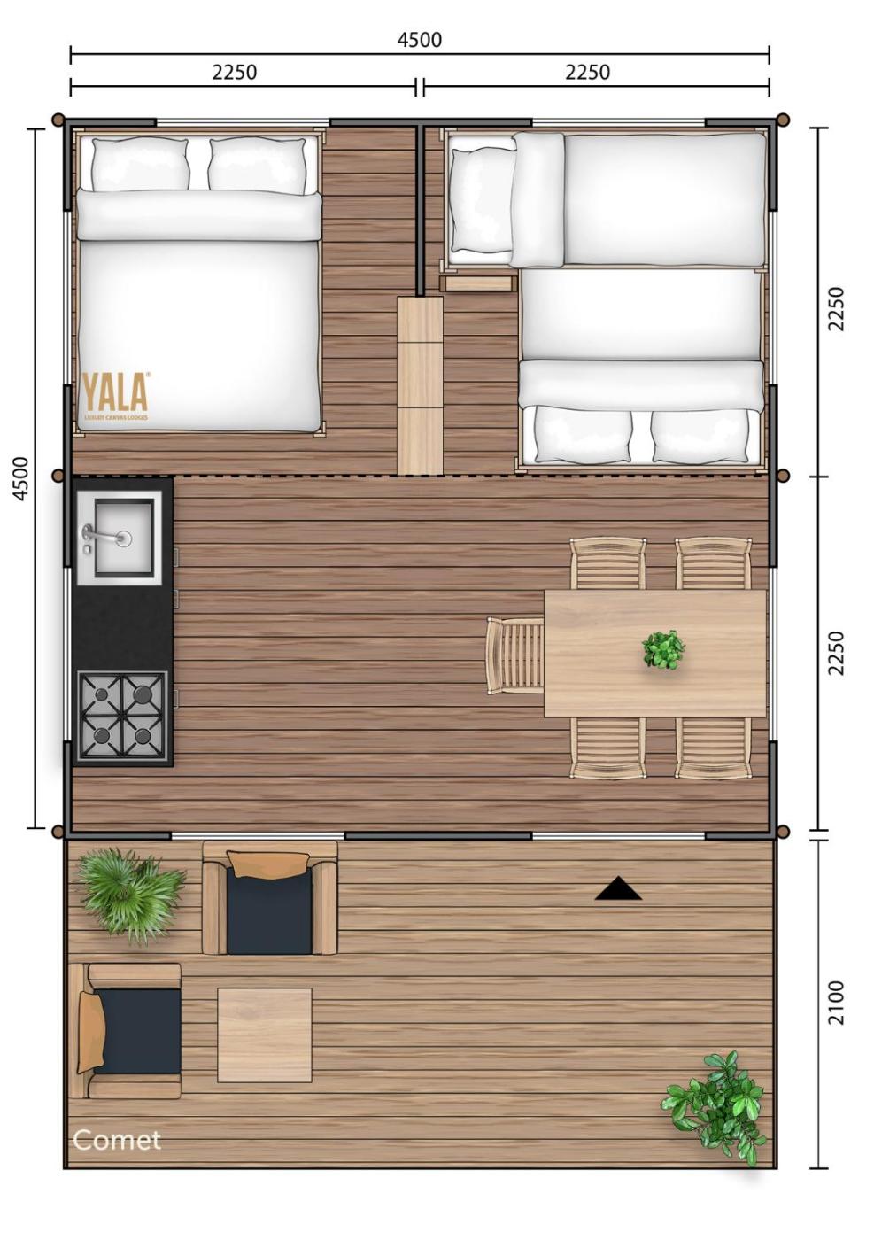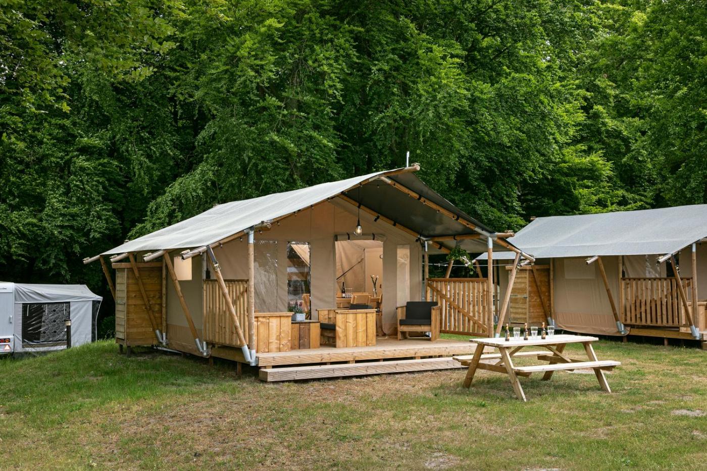 Safarizelt Kalahari. In the fully equipped kitchenette, guests will find a refrigerator, kitchenware, a microwave and an electric kettle. The tent provides a seating area, a dining area, as well as a patio and an outdoor dining area. The unit offers 3 beds.