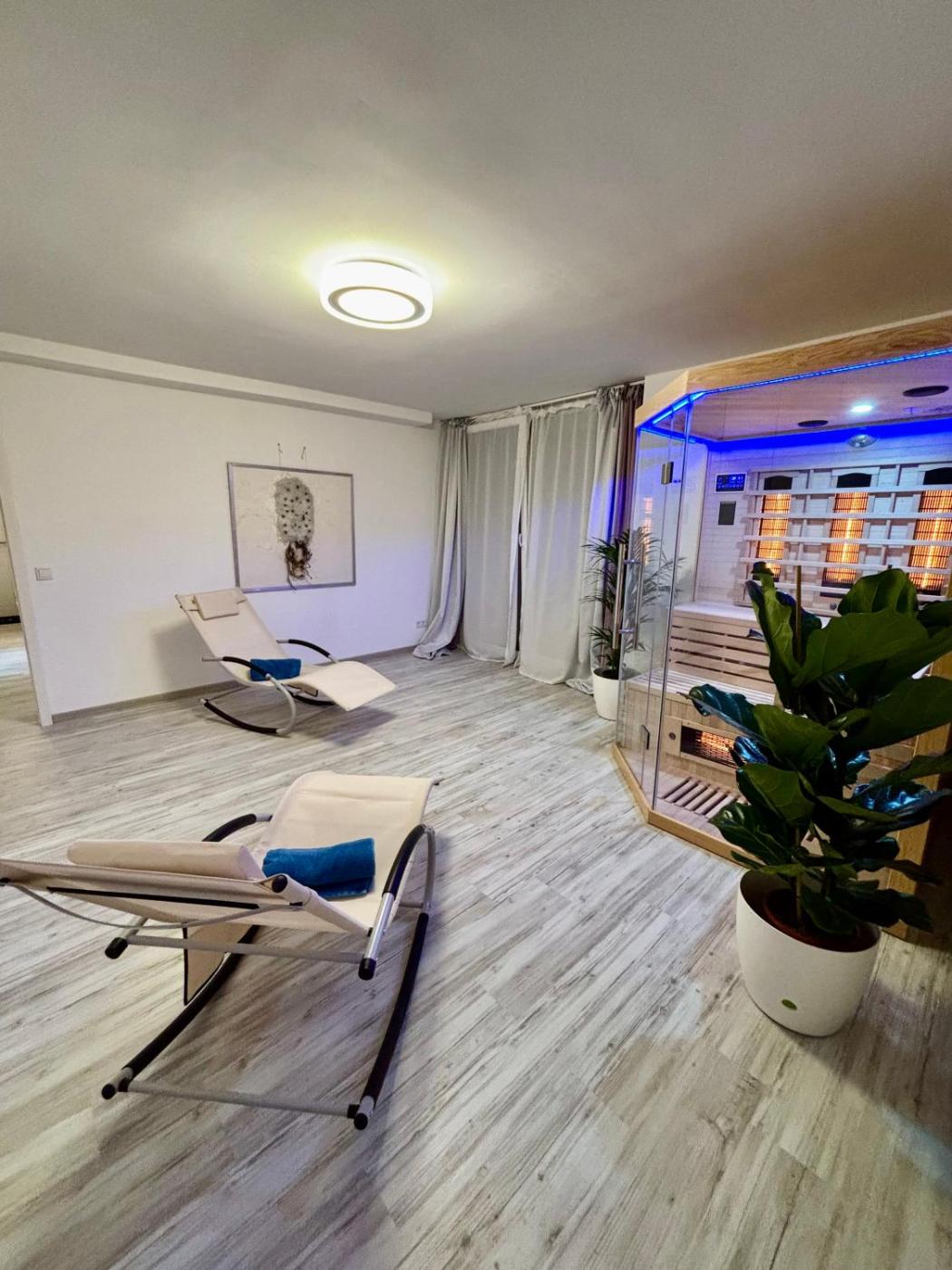 Apartment mit 1 Schlafzimmer. This apartments special feature is the sauna. Boasting 1 bedroom, this apartment has 1 bathroom with a walk-in shower, a seating area and terraceyou can relax. The fully equipped kitchen has a stovetop, a refrigerator, a dishwasher and kitchenware. The apartment offers a flat-screen TV with streaming services, a washing machine, a private entrance, a coffee machine as well as garden views. The unit offers 1 bed. ;