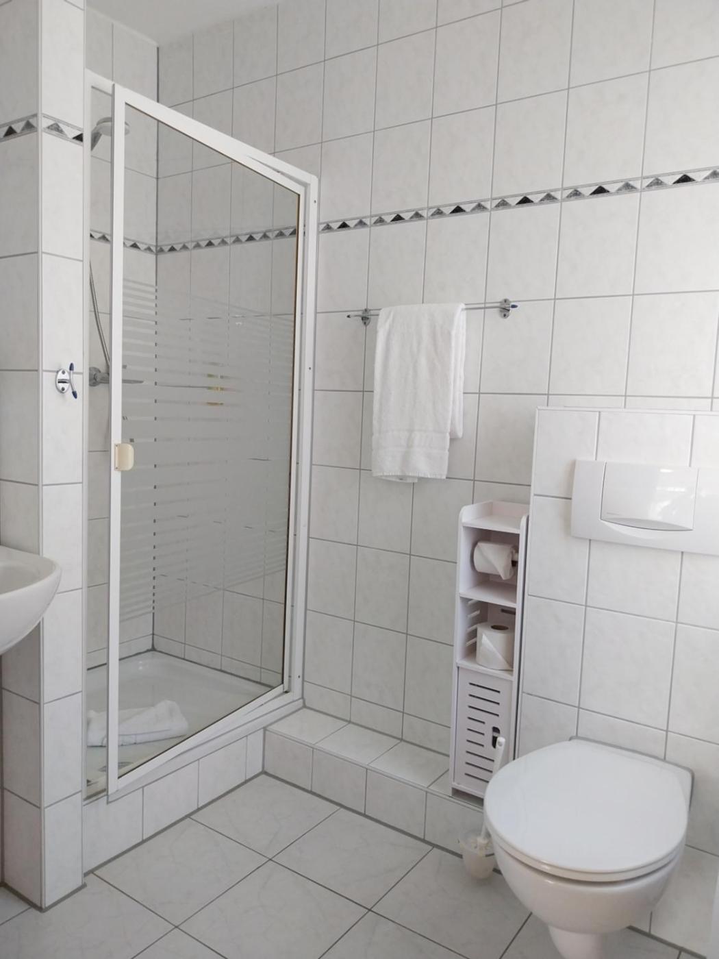 Familienzimmer mit Dusche. In dieser Wohneinheit befinden sich 3 Betten. ;