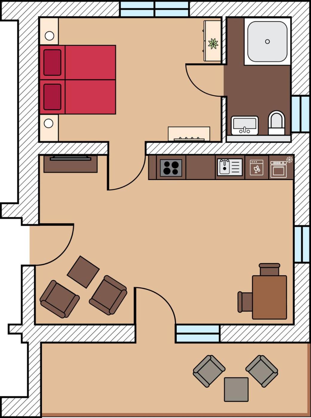 Apartment. Featuring 1 bedroom and 1 bathroom with a shower, this apartment offers a well-fitted kitchen and a terrace. Guests will find a stovetop, a refrigerator, a dishwasher and an oven in the well-equipped kitchen. The apartment also has a barbecue. This apartment features a washing machine, a coffee machine, a flat-screen TV and outdoor furniture. The unit has 1 bed.