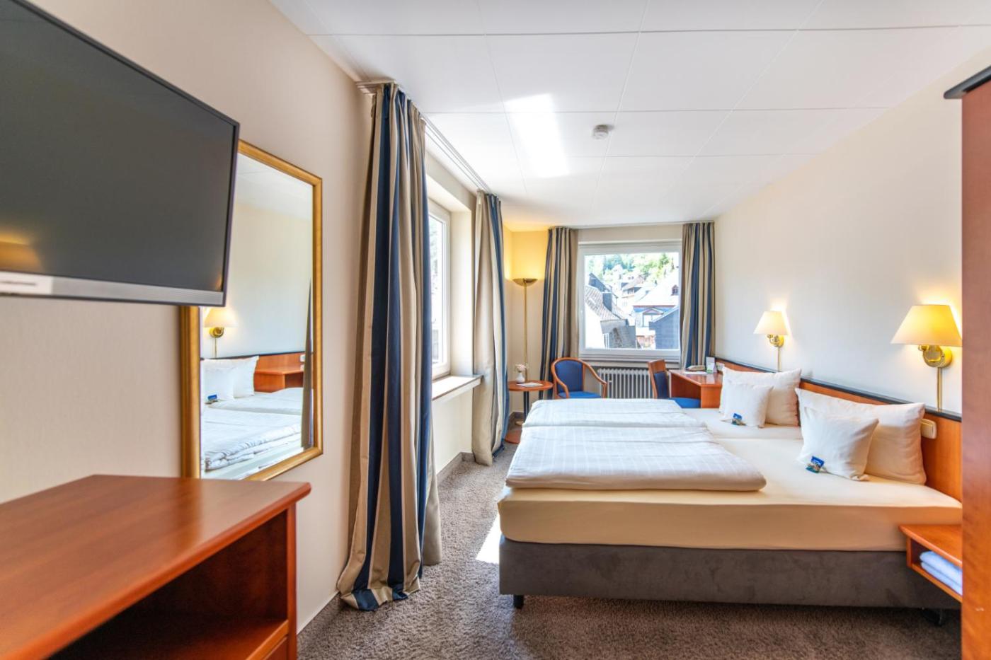 Doppelzimmer mit Blick auf die Altstadt. In diesem Zimmer genießen Sie Sat-TV und eingeschränkten Blick auf die Altstadt. ;