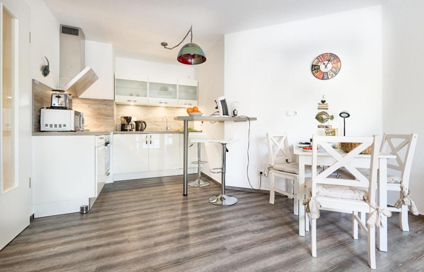 Apartment mit 1 Schlafzimmer. The apartment has 1 bedroom, 1 bathroom and a kitchen. Guests can make meals in the kitchen that features a dishwasher, a microwave, a toaster and an electric kettle. The apartment features tumble dryer and a balcony.