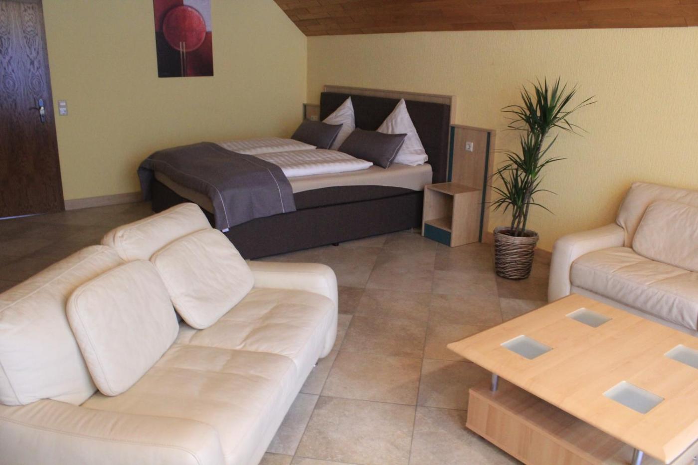Deluxe Doppelzimmer. The double room includes a private bathroom fitted with a shower and a hairdryer. The double room features a flat-screen TV with satellite channels, a wardrobe, a sofa, heating as well as garden views. The unit has 1 bed.