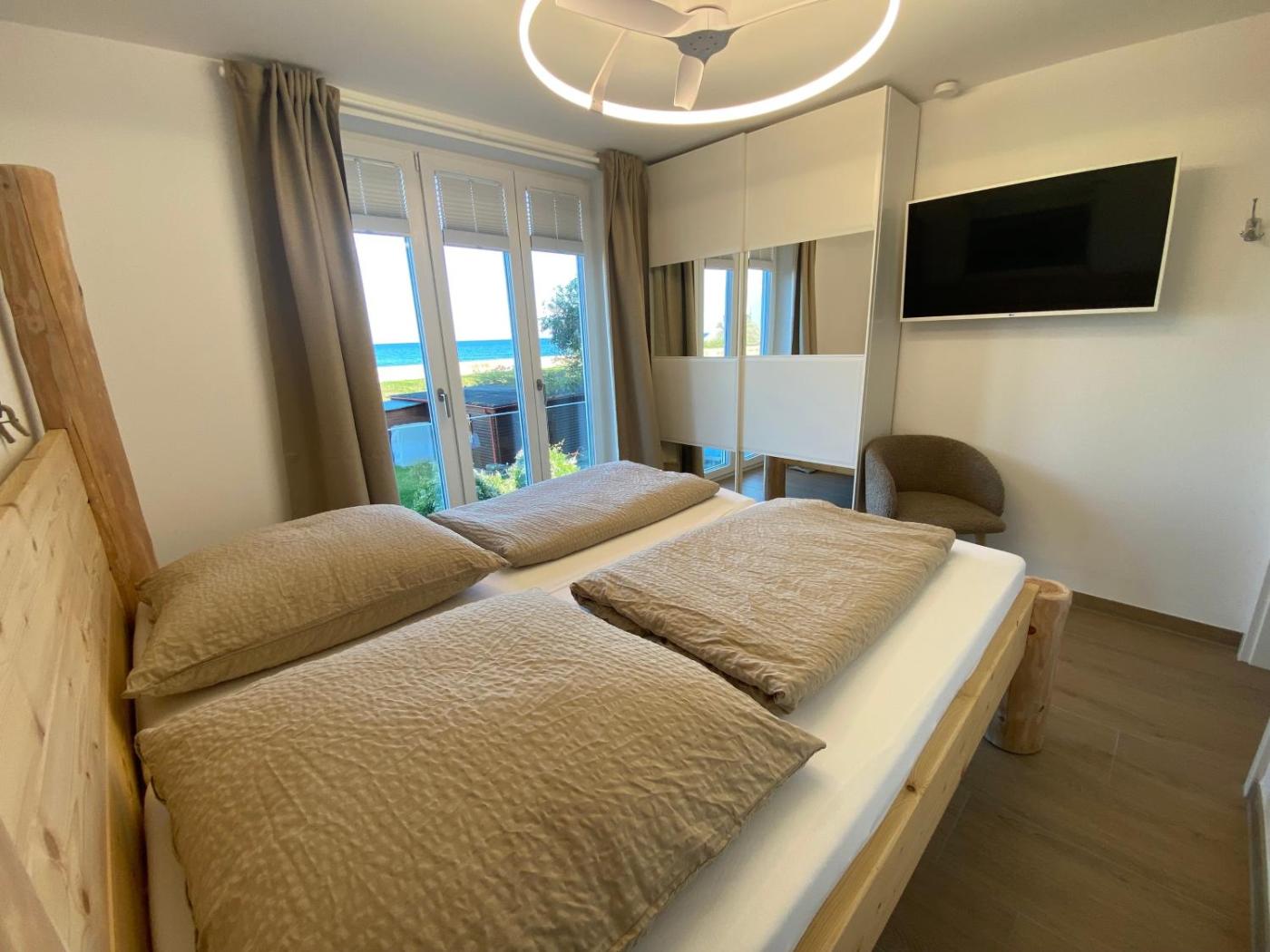 Diese Ferienwohnung verfügt über einen Balkon mit Meerblick und besticht außerdem durch Satelliten Flachbild-TV, eine gut ausgestattete Küchenzeile mit einem Kühlschrank, einem Geschirrspüler und einem Ofen sowie 2 Badezimmer mit einer Badewanne und einem Haartrockner.