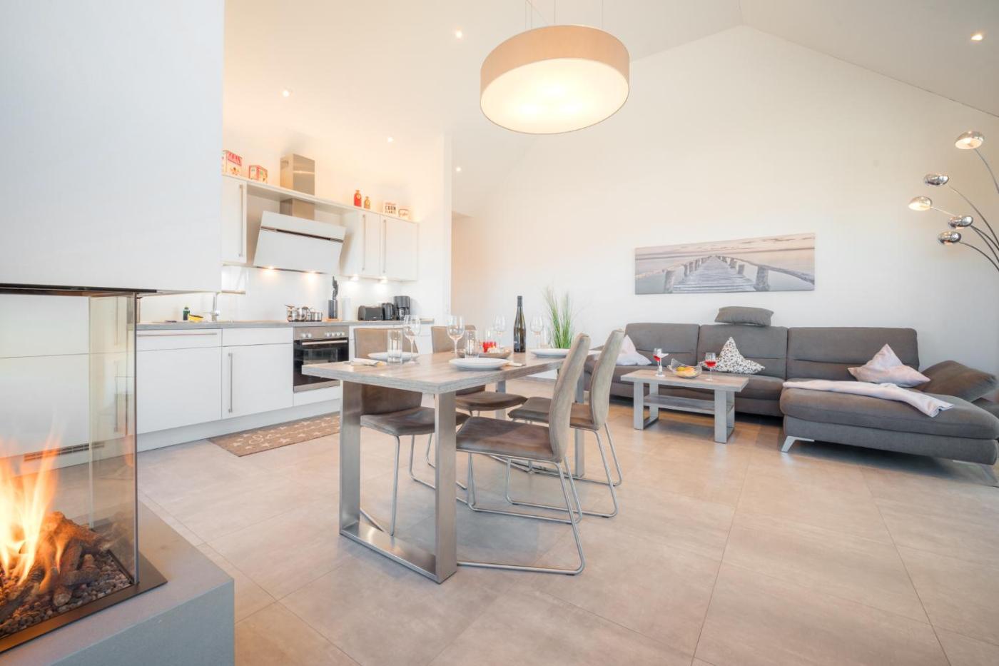 Penthouse-Apartment. The sauna and fireplace are the standout features of this apartment. This spacious apartment comes with a kitchen, a seating area, 2 separate bedrooms and 1 bathroom with a shower and a hairdryer. Guests will find a stovetop, a refrigerator, a dishwasher and kitchenware in the well-fitted kitchen. The apartment also includes a barbecue. Boasting a balcony with sea views, this apartment also features a washing machine and a TV with satellite channels. The unit has 2 beds.