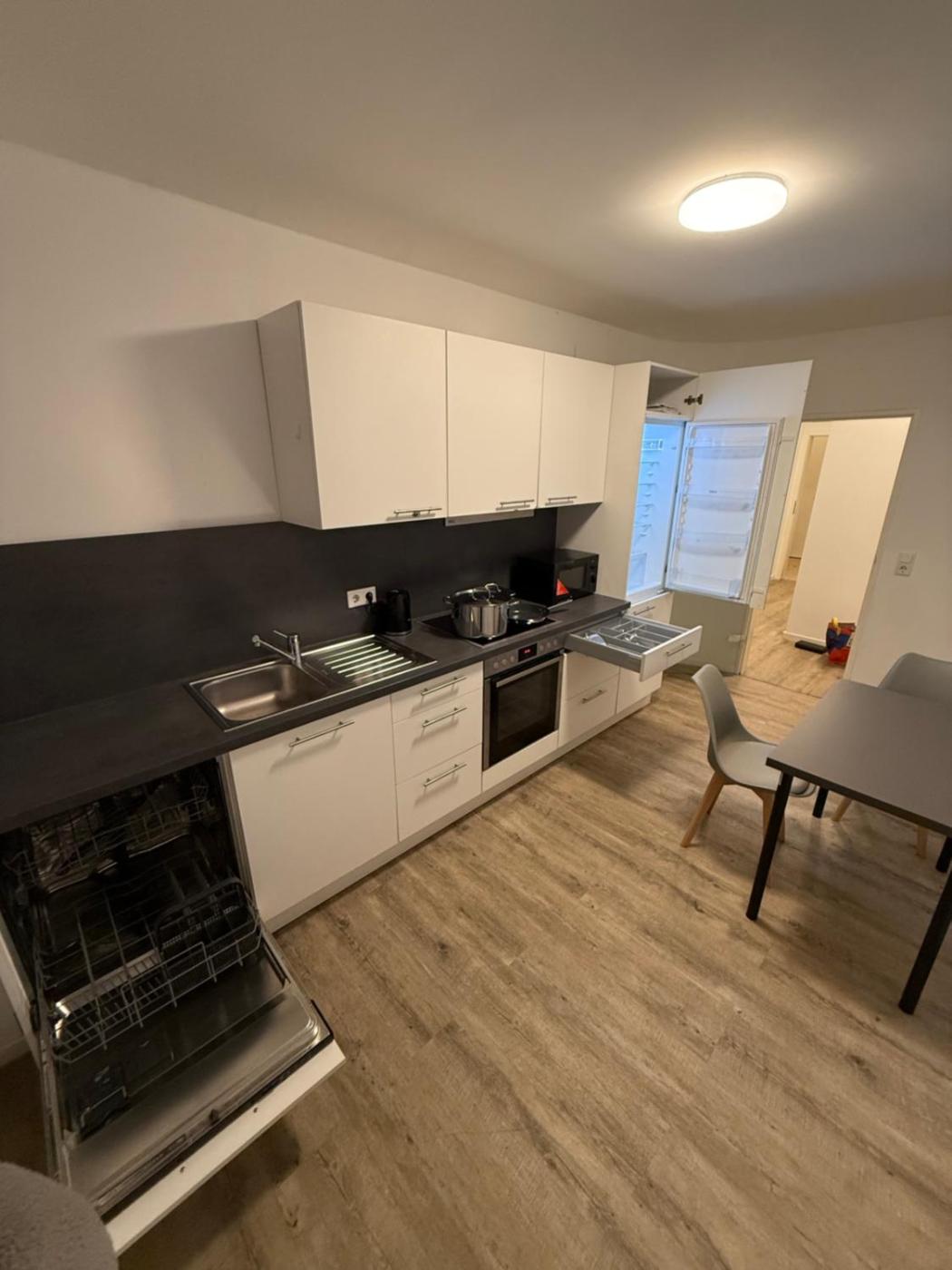 Einzelzimmer mit Gemeinschaftsbad. Dieses Einzelzimmer verfügt über ein eigenes Bad mit einer ebenerdigen Dusche, kostenlosen Pflegeprodukten und einem Haartrockner. In der gut ausgestatteten Küche befinden sich ein Kochfeld, ein Kühlschrank, ein Geschirrspüler sowie Küchenutensilien. Das Einzelzimmer bietet Fliesenboden, einen Sitzbereich mit einem Flachbild-TV mit Streaming-Diensten, eine Waschmaschine, schallisolierte Wände und einen Kleiderschrank. In der Wohneinheit ist 1 Bett vorhanden. ;