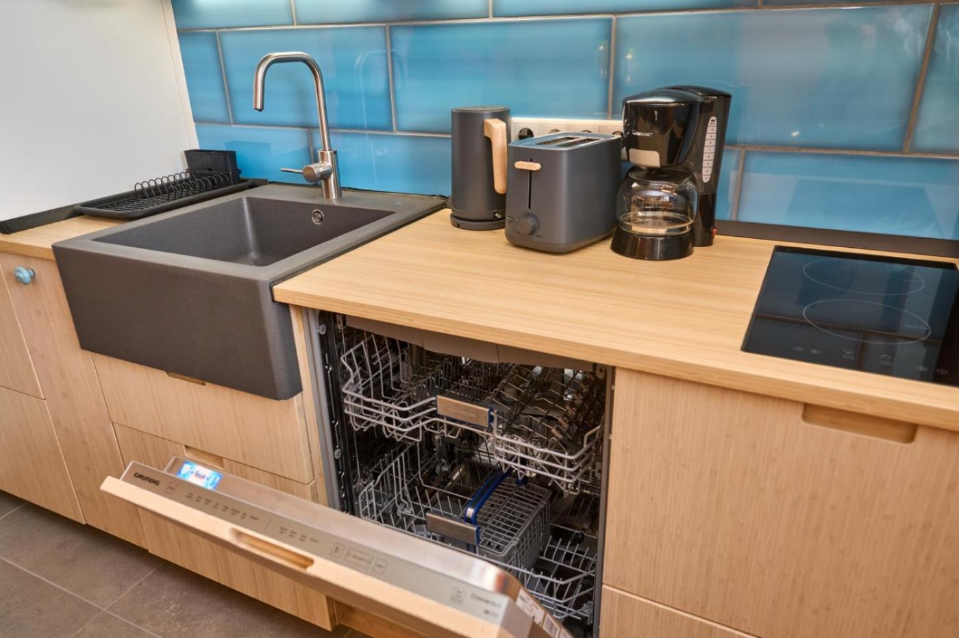 Apartment mit 2 Schlafzimmern und Balkon. This spacious apartment includes 1 living room, 2 separate bedrooms and 1 bathroom with a bath and a bidet. The well-fitted kitchen has a stovetop, a refrigerator, a dishwasher and kitchenware. The apartment features tiled floors, a seating area with a flat-screen TV, a private entrance, a tea and coffee maker as well as city views. The unit has 3 beds.