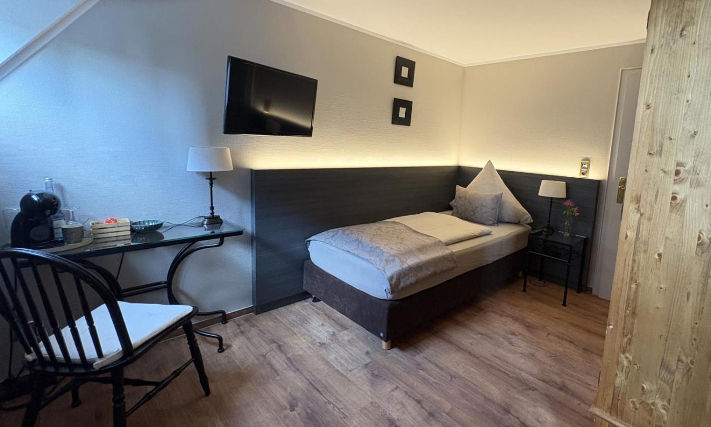 Einzelzimmer. Das Einzelzimmer bietet einen Kleiderschrank sowie Tee- und Kaffeezubehör. Ein eigenes Bad mit einer Dusche und einem Haartrockner ist ebenfalls vorhanden. Freuen Sie sich im beheizbaren Einzelzimmer auch auf einen Flachbild-TV. In der Wohneinheit befindet sich 1 Bett.