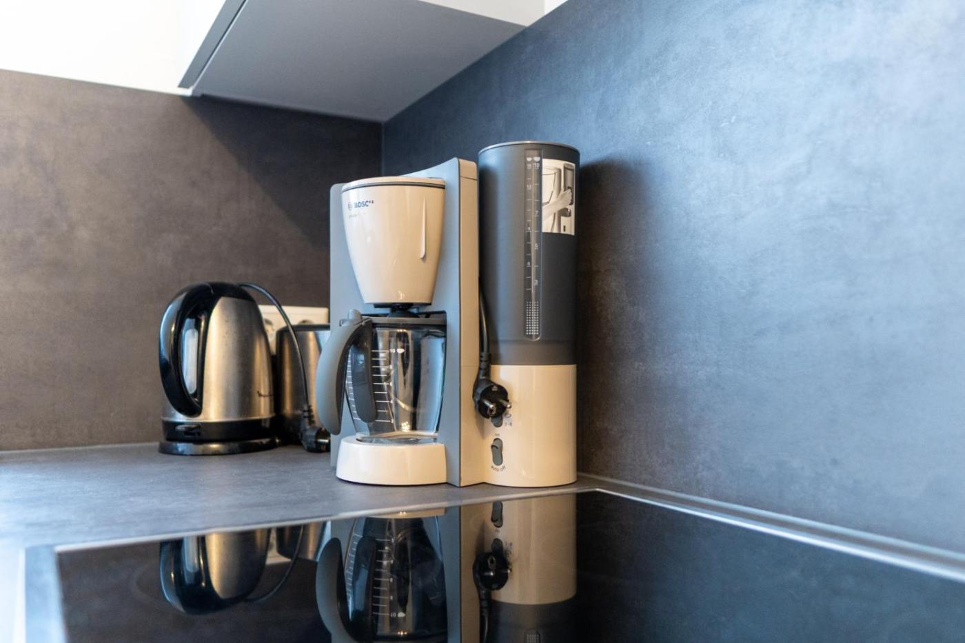 Apartment mit 1 Schlafzimmer. This apartment includes 1 bedroom, kitchen, a terrace and 1 bathroom with a shower. The well-fitted kitchen has a stovetop, a refrigerator, a dishwasher and kitchenware. Boasting outdoor furniture, this apartment also offers a washing machine, a coffee machine and a flat-screen TV. The unit has 1 bed.