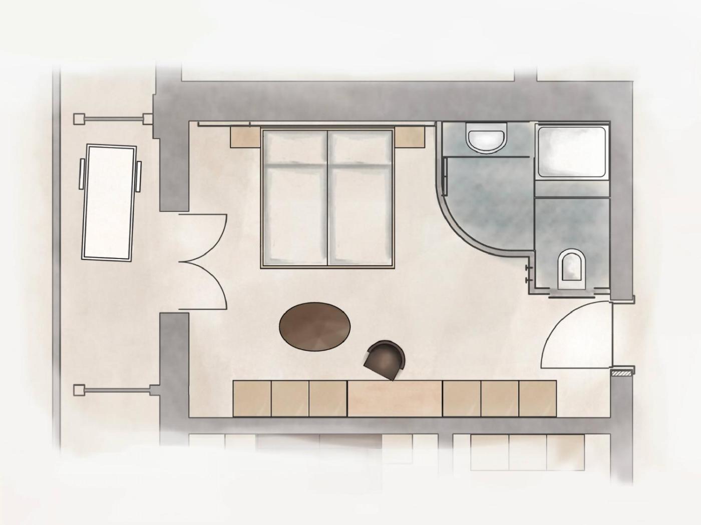 Kleines Doppelzimmer. Dieses Doppelzimmer umfasst ein eigenes Bad mit einer Dusche, einem Haartrockner und Hausschuhen. Kostenlose Pflegeprodukte und Bademäntel sind ebenfalls vorhanden. Das Doppelzimmer mit Bergblick verfügt über eine Minibar, einen Kleiderschrank, einen Safe und einen Flachbild-Sat-TV. Die Wohneinheit ist mit 1 Bett ausgestattet. ;
