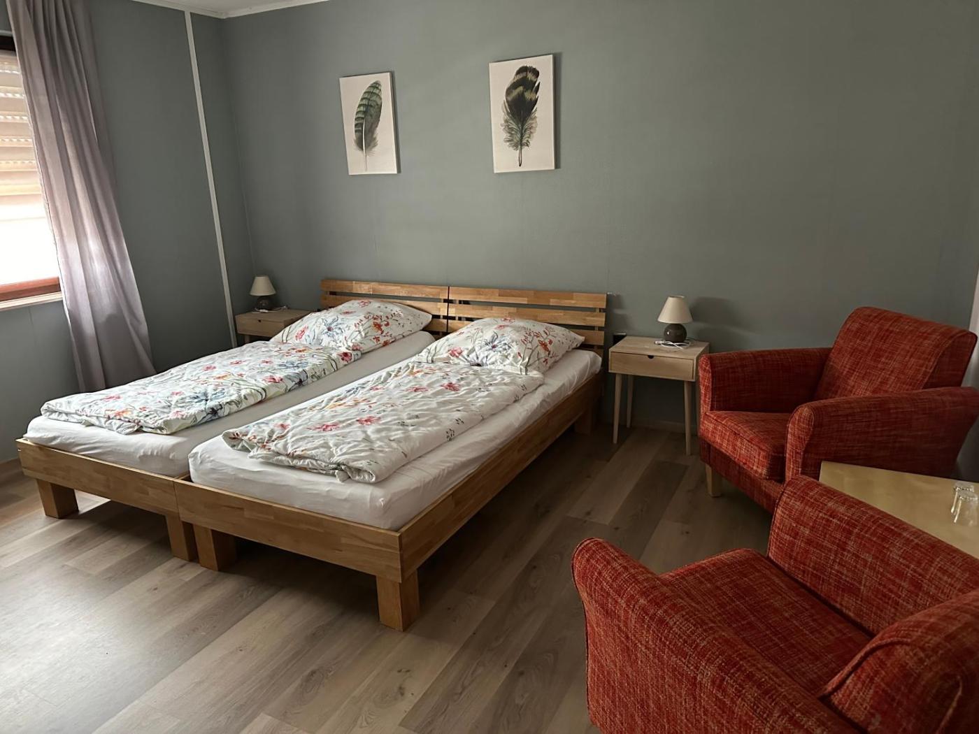 In der Unterkunft Pension "Zum Wilhelm" - Germerode ist jedes Zimmer eingerichtet mit einem Balkon. In der Unterkunft Pension "Zum Wilhelm" - Germerode ist jedes Zimmer ergänzt mit Bettwäsche und Handtüchern.