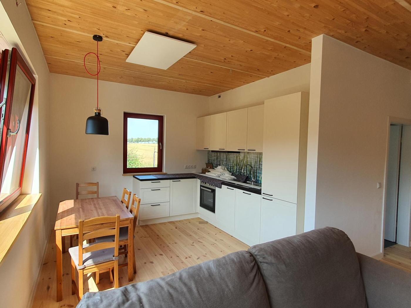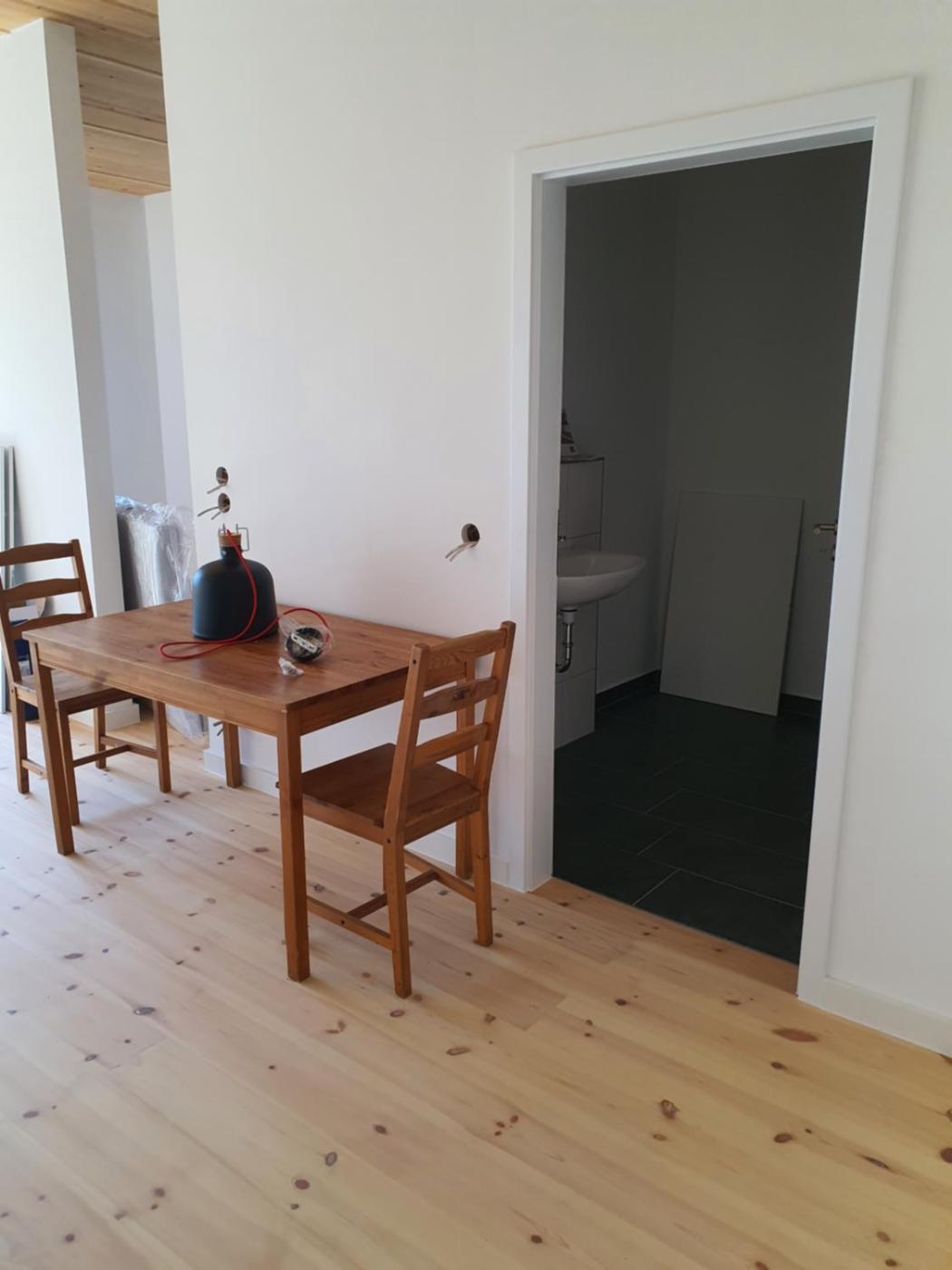 Eine voll ausgestattete Küche und ein eigenes Badezimmer sind vorhanden.