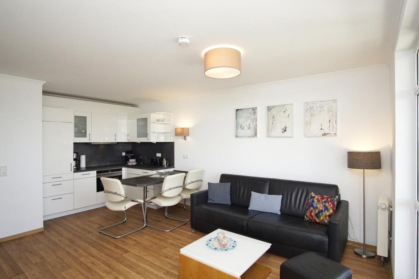 Apartment mit Meerblick. This apartment features a pool with a view and a sauna. This apartment features 1 living room, 1 separate bedroom and 1 bathroom with a shower. In the kitchen, guests will find a stovetop, a refrigerator, a dishwasher and kitchenware. Boasting a balcony with sea views, this apartment also features a washing machine and a TV. The unit has 2 beds.