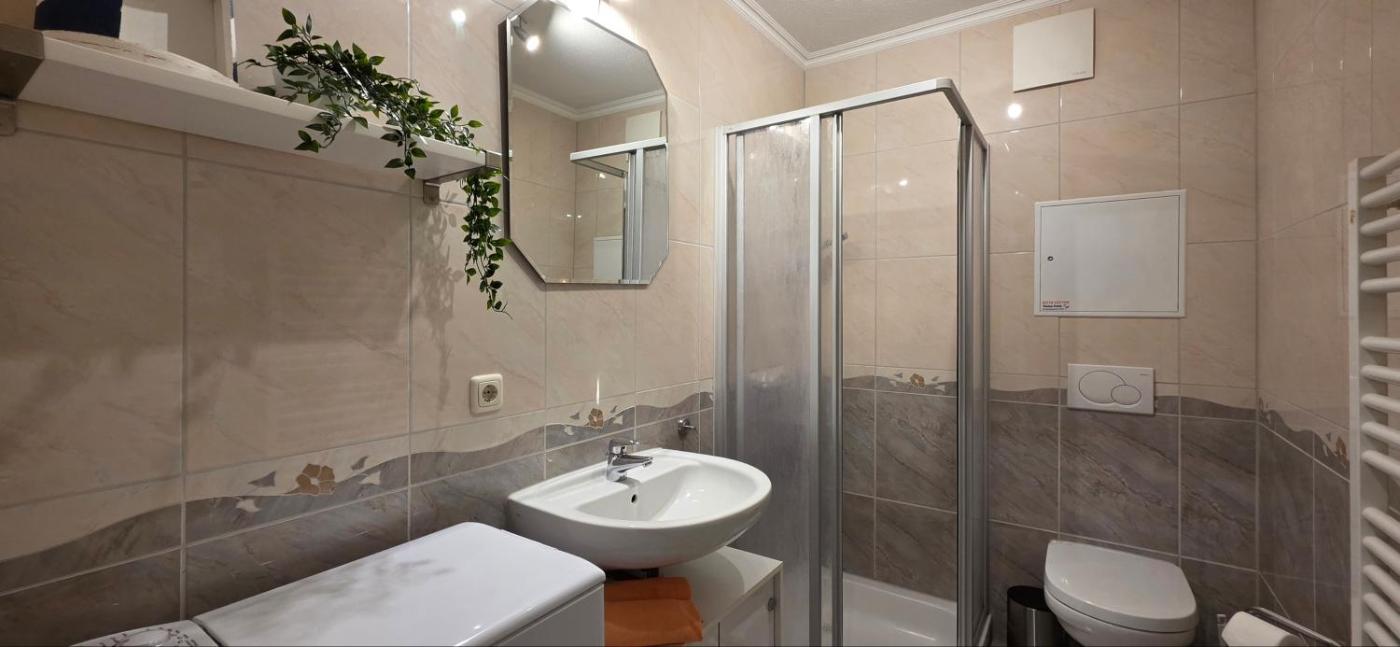 Apartment mit Terrasse. This apartment consists of 1 living room, 1 separate bedroom and 1 bathroom with a shower. Guests can make meals in the kitchen that is equipped with a stovetop, a refrigerator, a dishwasher and kitchenware. Featuring a terrace with garden views, this apartment also provides a washing machine and a TV. The unit offers 2 beds.