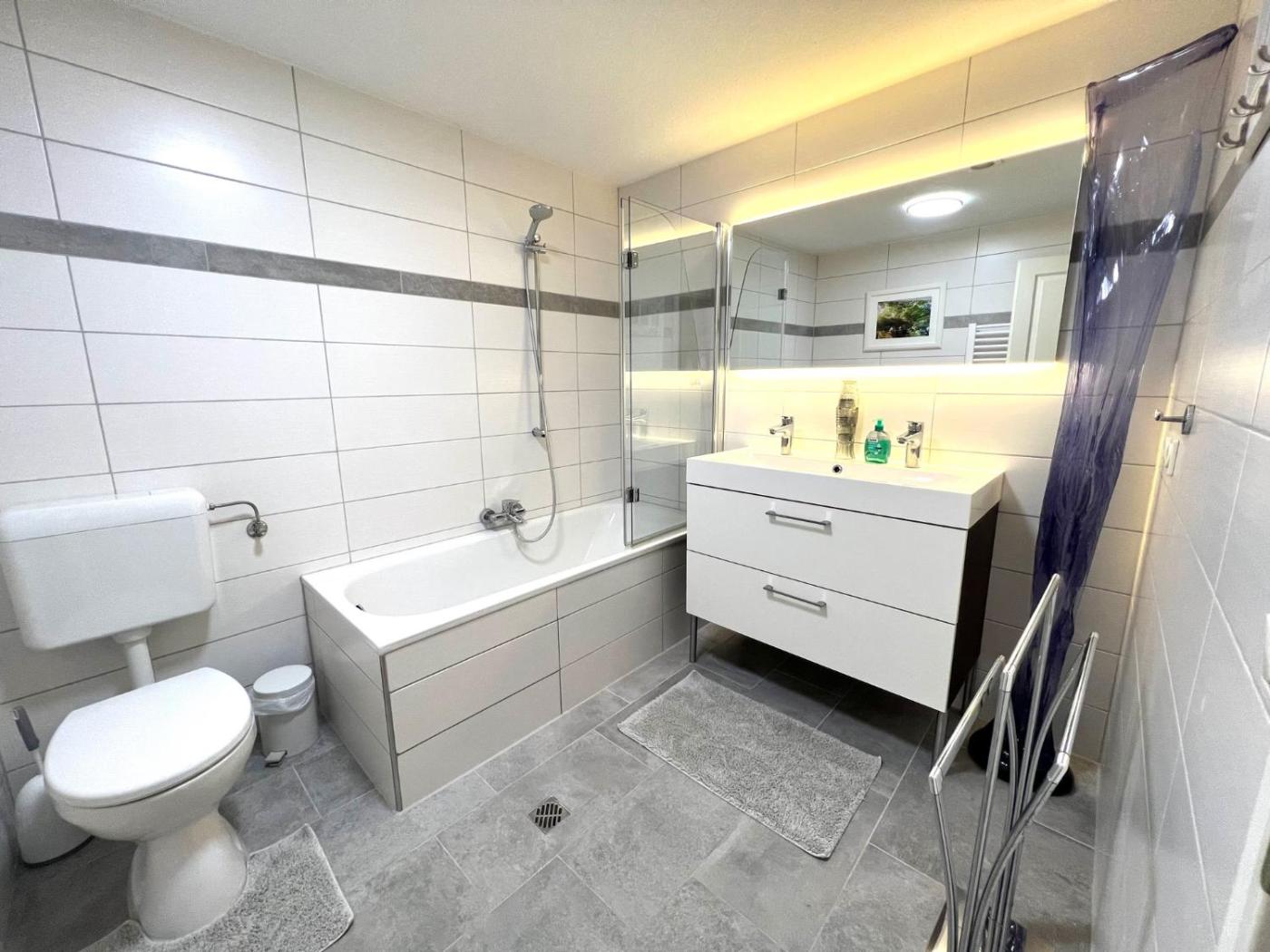 Diese Ferienwohnung verfügt über eine Terrasse sowie Gartenblick, 2 Schlafzimmer, ein Wohnzimmer, einen Satelliten Flachbild-TV, eine gut ausgestattete Küche sowie 1 Badezimmer mit einer Dusche und einer Badewanne. In dieser Ferienwohnung werden Handtücher und Bettwäsche angeboten.