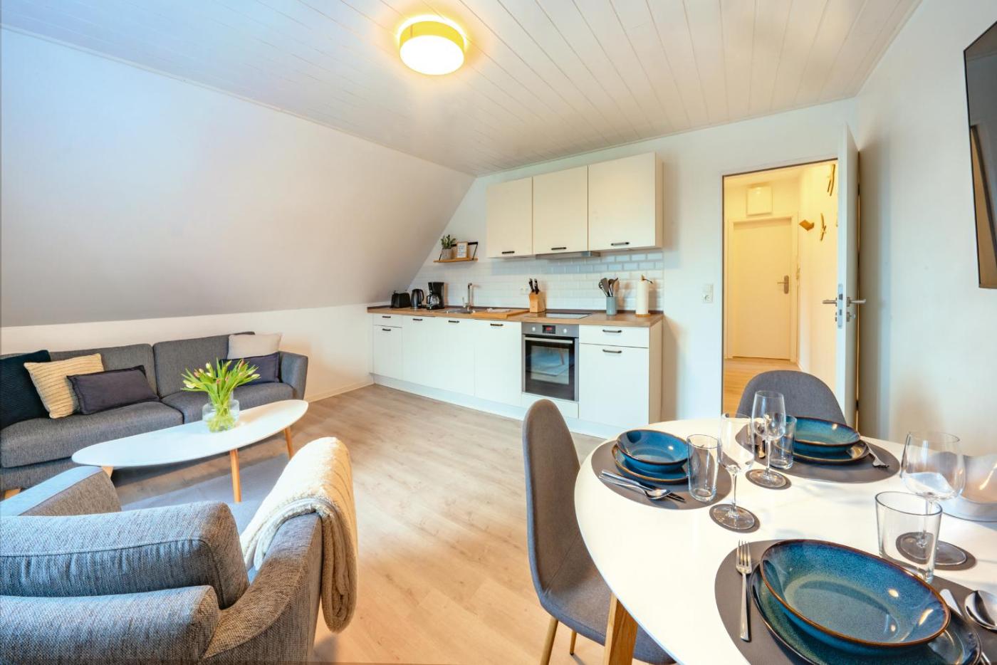 Apartment mit 2 Schlafzimmern. Featuring a private entrance, this apartment also is comprised of 2 bedrooms, a seating area and 1 bathroom with a shower and a hairdryer. The well-fitted kitchenette features a stovetop, a refrigerator, a dishwasher and kitchenware. The apartment offers a tea and coffee maker, a dining area, a wardrobe, a high chair for children, as well as a flat-screen TV with cable channels. The unit offers 2 beds.