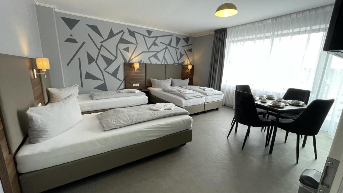Vierbettzimmer mit Balkon. Dieses Vierbettzimmer verfügt über ein eigenes Bad mit einer Dusche und einem Haartrockner. Auch kostenlose Pflegeprodukte sind vorhanden. In der Küche, die mit einem Kochfeld, einem Kühlschrank, Küchenutensilien und einer Mikrowelle ausgestattet ist, können die eigenen Mahlzeiten zubereitet werden. Dieses Vierbettzimmer verfügt über einen Balkon, einen Essbereich, einen Kleiderschrank und einen Flachbild-TV. In der Wohneinheit befinden sich 4 Betten. ;