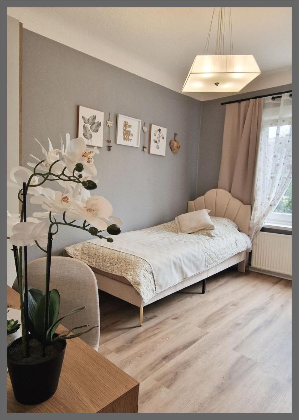 Zweibettzimmer mit Gemeinschaftsbad. The twin room offers a washing machine and a coffee machine, as well as a shared bathroom boasting a hairdryer. In the fully equipped kitchen, guests will find a stovetop, a refrigerator, kitchenware and an oven. A dining area, parquet floors and heating are offered in this twin room. The unit has 2 beds. ;