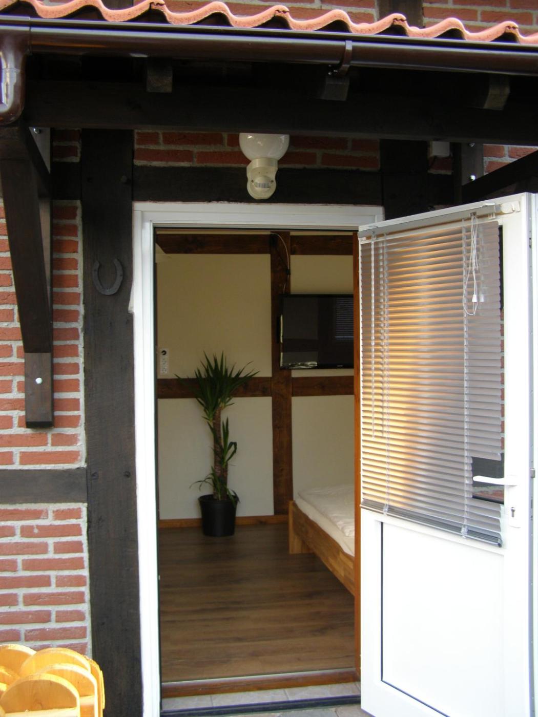 Zweibettzimmer mit eigenem Eingang. This twin room features a private access point for guests.