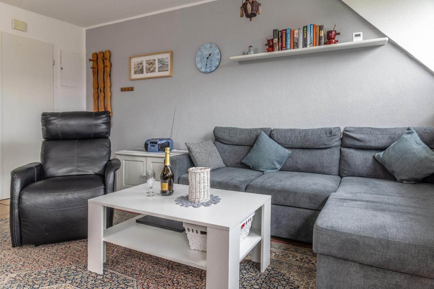 Apartment - auf 2 Etagen. This apartment features 1 bedroom, a seating area with a sofa and 1 bathroom with a shower. Meals can be prepared in the well-fitted kitchen, which has a stovetop, a refrigerator, a dishwasher and kitchenware. Boasting an outdoor dining area, this apartment also features a washing machine, a coffee machine and a TV with satellite channels. The unit has 2 beds.