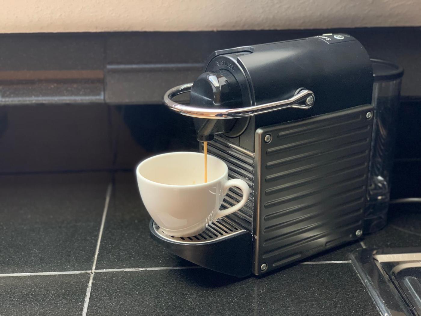 Diese Ferienwohnung ist versehen mit einem Flachbild-TV. Die Küche ist eingerichtet mit einem Kühlschrank und einem Geschirrspüler, einem Ofen sowie einer Kaffeemaschine und einem Wasserkocher.