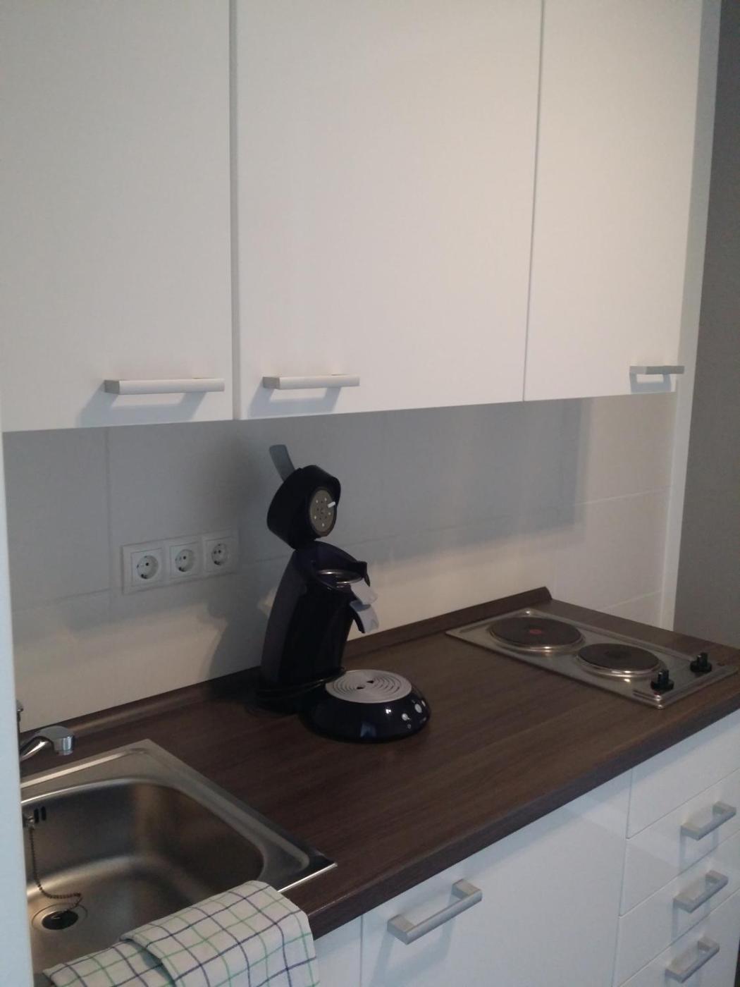 Studio-Apartment (1 bis 2 Erwachsene). Dieses Apartment verfügt über eine Kaffeepadmaschine, einen Wasserkocher, einen Toaster und Küchenutensilien. ;