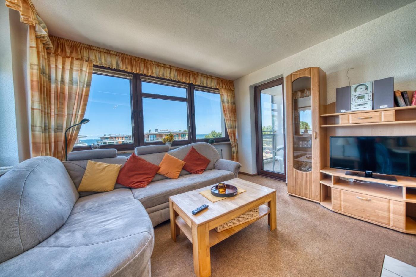 Die Unterkunft 3AM46, Aquamarina" 46 Steinwarder 11 besticht durch Seeblick und Übernachtungsmöglichkeiten mit einem Balkon und einer Kaffeemaschine, ungefähr 200 m von Strand in Heiligenhafen entfernt. Fehmarnsund und Wasservogelreservat Wallnau sind weniger als 12 km und 30 km von dieser Ferienwohnung und kostenloses WLAN ist vorhanden.