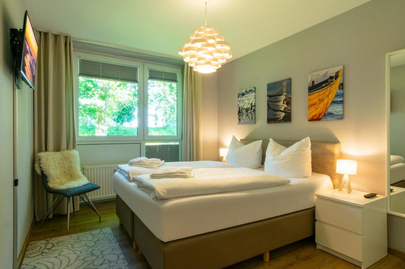 Apartment mit Balkon. This apartment comes with a kitchen, a seating area, 2 separate bedrooms and 1 bathroom with a shower and a hairdryer. In the kitchen, guests will find a stovetop, a refrigerator, a dishwasher and kitchenware. Boasting a balcony with garden views, this apartment also features a coffee machine and a flat-screen TV. The unit has 2 beds.