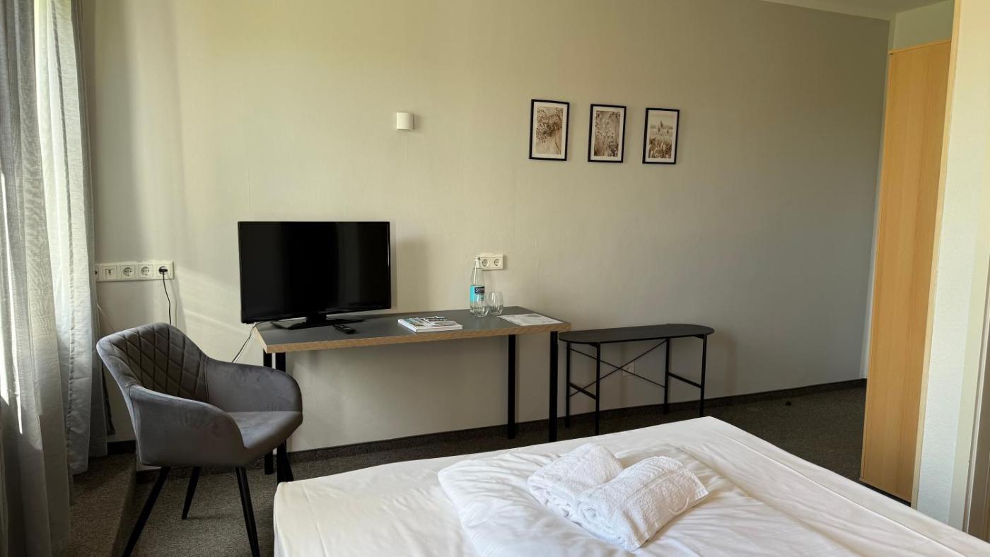 Doppelzimmer. The double room offers a minibar, a tea and coffee maker, as well as a private bathroom featuring a shower and a hairdryer. The double room features a wardrobe, a safe deposit box, a carpeted floor, heating, as well as a flat-screen TV. The unit offers 1 bed. ;