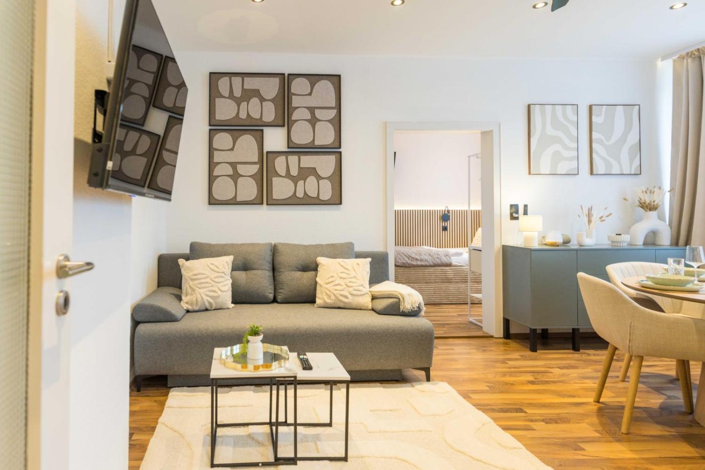 Apartment mit 1 Schlafzimmer. This apartments special feature is the sauna. Featuring a private entrance, this apartment comprises 1 living room, 1 separate bedroom and 1 bathroom with a shower and a hairdryer. In the kitchen, guests will find a stovetop, a refrigerator, a dishwasher and kitchenware. The apartment provides a washing machine, soundproof walls, a tea and coffee maker, a flat-screen TV with streaming services, as well as city views. The unit offers 3 beds.