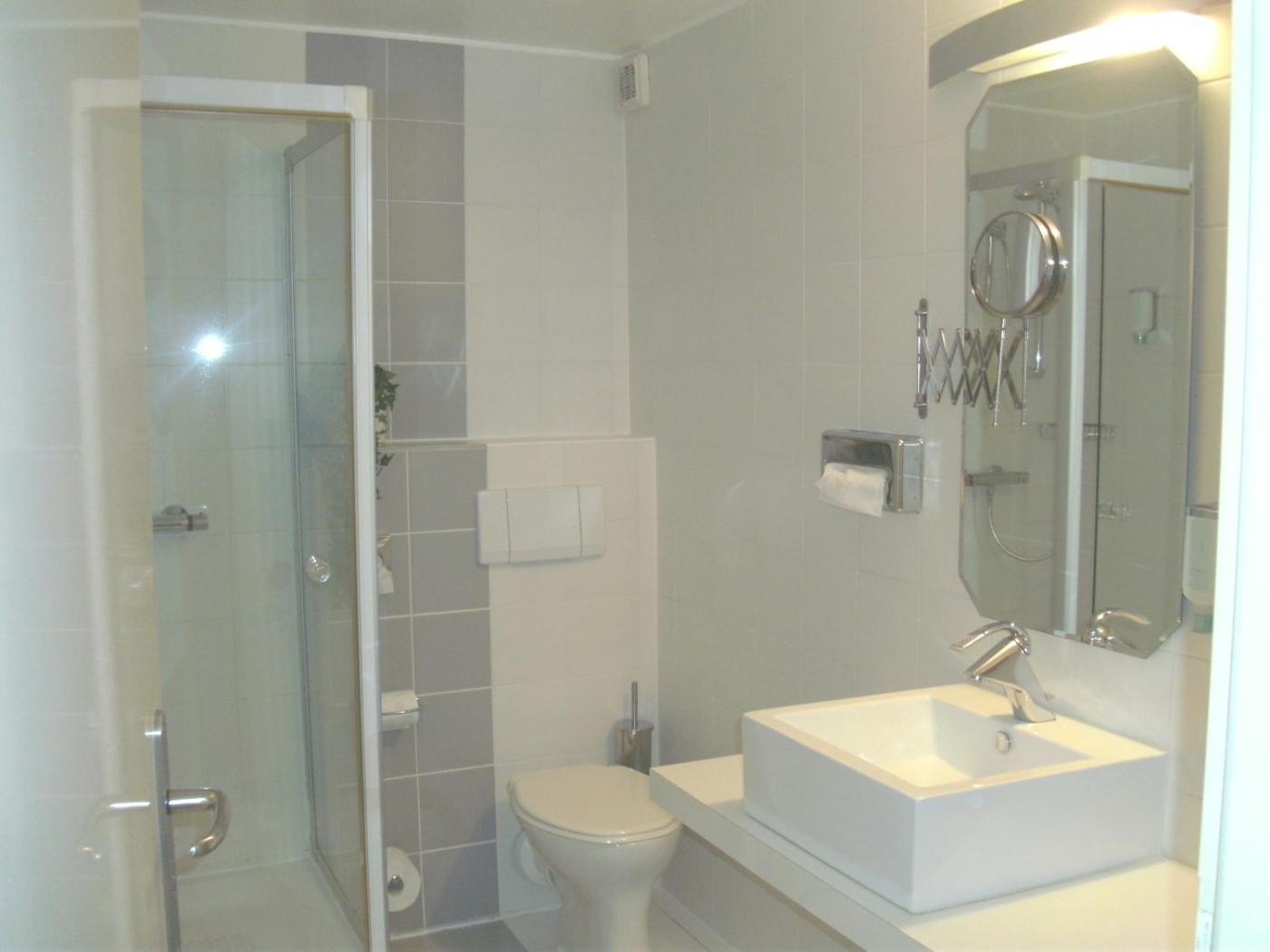Einzelzimmer mit Dusche. Providing free toiletries and bathrobes, this single room includes a private bathroom with a bath or a shower and a hairdryer. The single room features tiled floors, a seating area with a flat-screen TV with satellite channels, a minibar, a tea and coffee maker, as well as a wardrobe. The unit offers 1 bed. ;