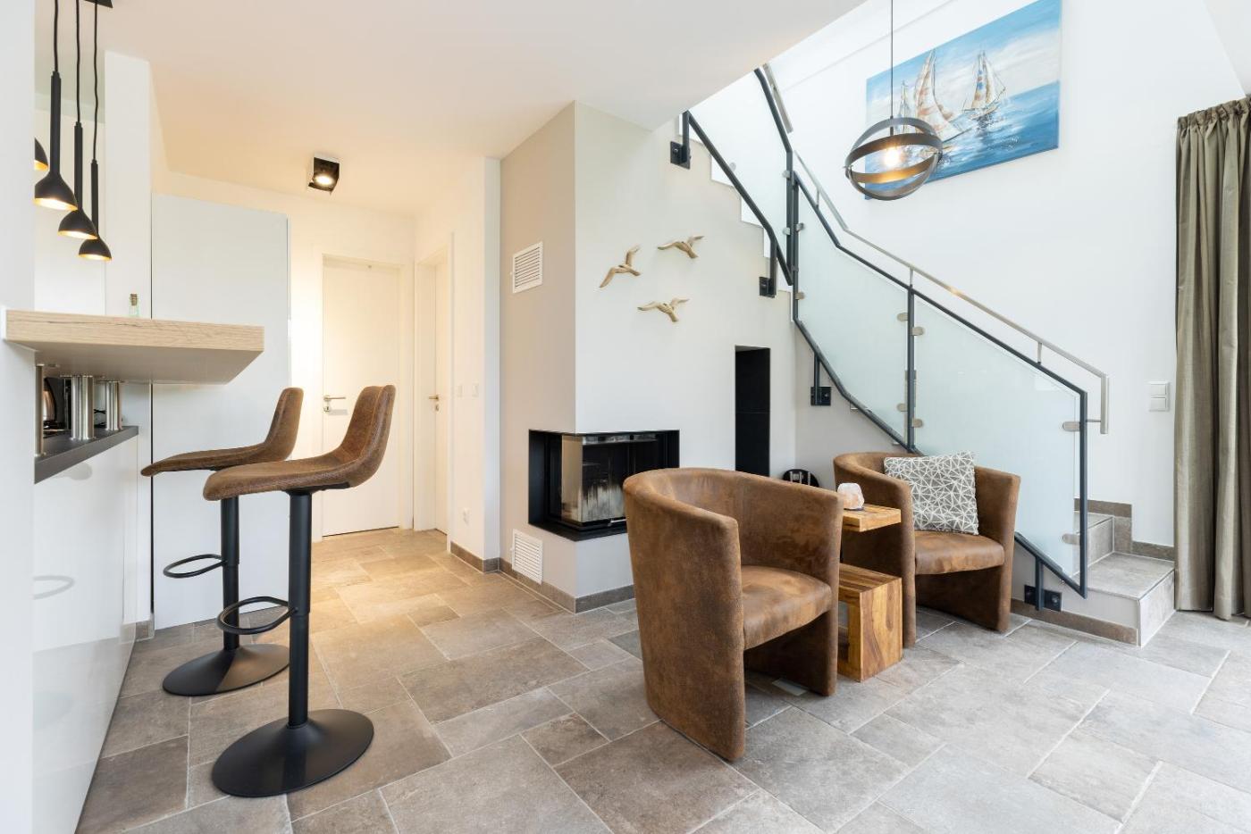 Ferienhaus. This holiday homes standout features are the sauna and fireplace. This holiday home consists of 2 bedrooms, kitchen, a terrace and 2 bathrooms with a bath. Guests can make meals in the kitchen that is equipped with a stovetop, a refrigerator, a dishwasher and an oven. Featuring a balcony with sea views, this holiday home also provides a washing machine and a flat-screen TV. The unit offers 2 beds.