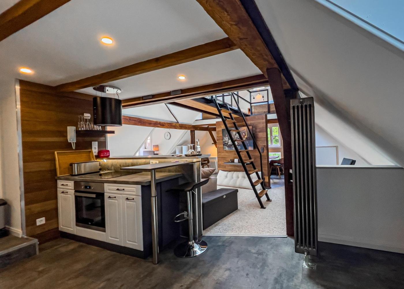 Maisonette-Suite. This suite includes 1 living room, 1 separate bedroom and 1 bathroom with a shower and free toiletries. Boasting a terrace with garden views, this suite also offers a tea and coffee maker and a flat-screen TV. The unit has 1 bed. ;