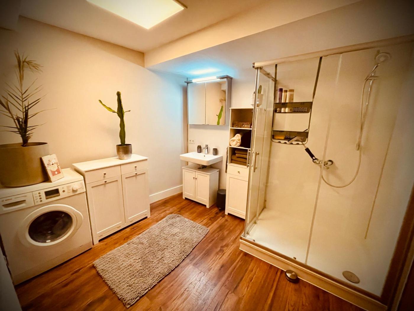 Apartment - Erdgeschoss. Featuring a private entrance, this apartment comprises 1 living room, 1 separate bedroom and 1 bathroom with a walk-in shower and a hairdryer. Guests will find a stovetop, a refrigerator, a dishwasher and kitchenware in the well-equipped kitchen. The apartment also provides guests with a barbecue. The apartment provides a flat-screen TV with streaming services, a washing machine, a tea and coffee maker, a seating area as well as garden views. The unit offers 1 bed. ;