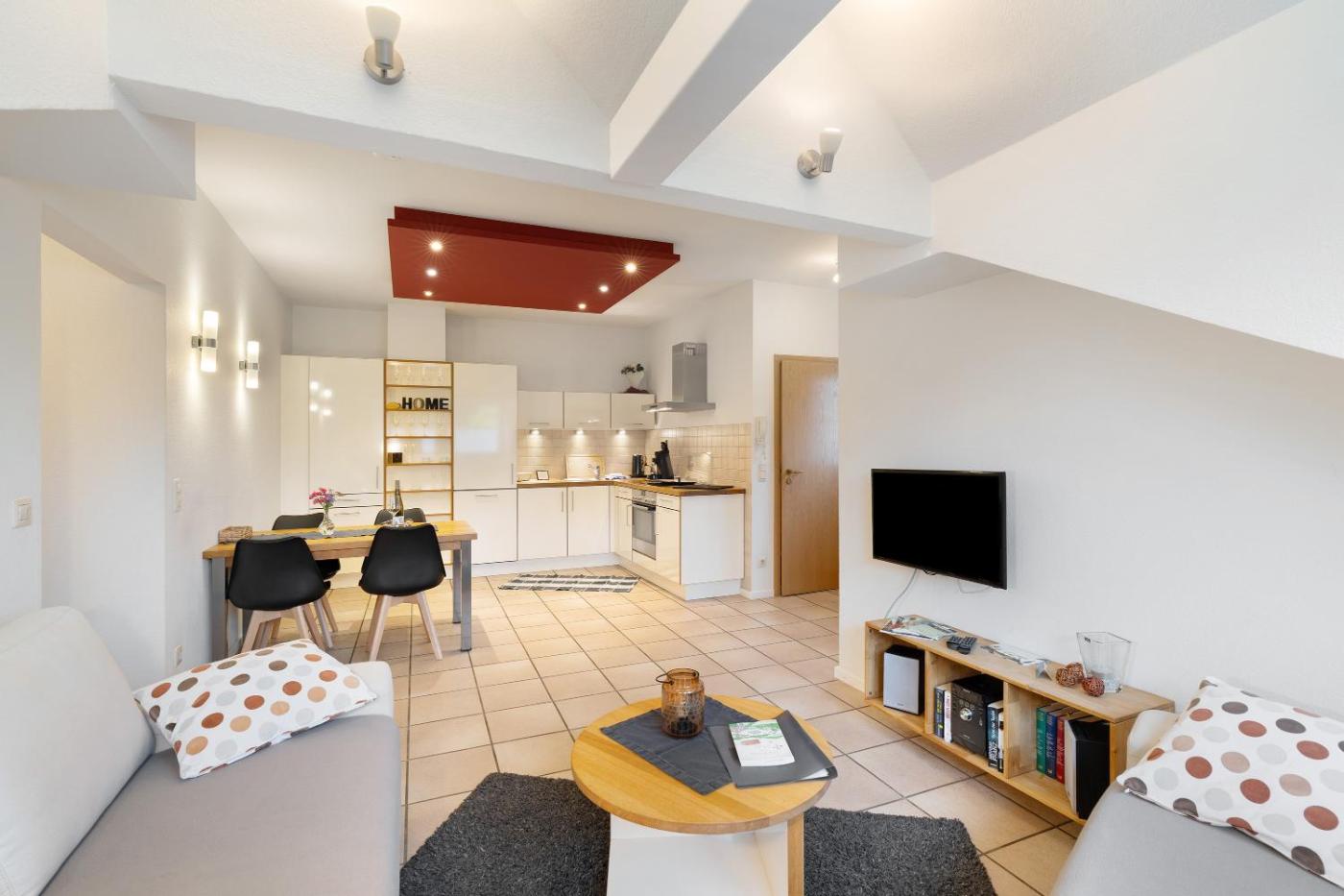 Deluxe-Apartment mit 2 Schlafzimmern und Gartenblick. Boasting a private entrance, this apartment comes with a kitchen, 2 bedrooms and 1 bathroom with a shower and a hairdryer. Guests can make meals in the kitchen that features a dishwasher, kitchenware, an oven and a microwave. This apartment has a coffee machine, a high chair for children, a TV with cable channels and garden views. The unit has 3 beds.