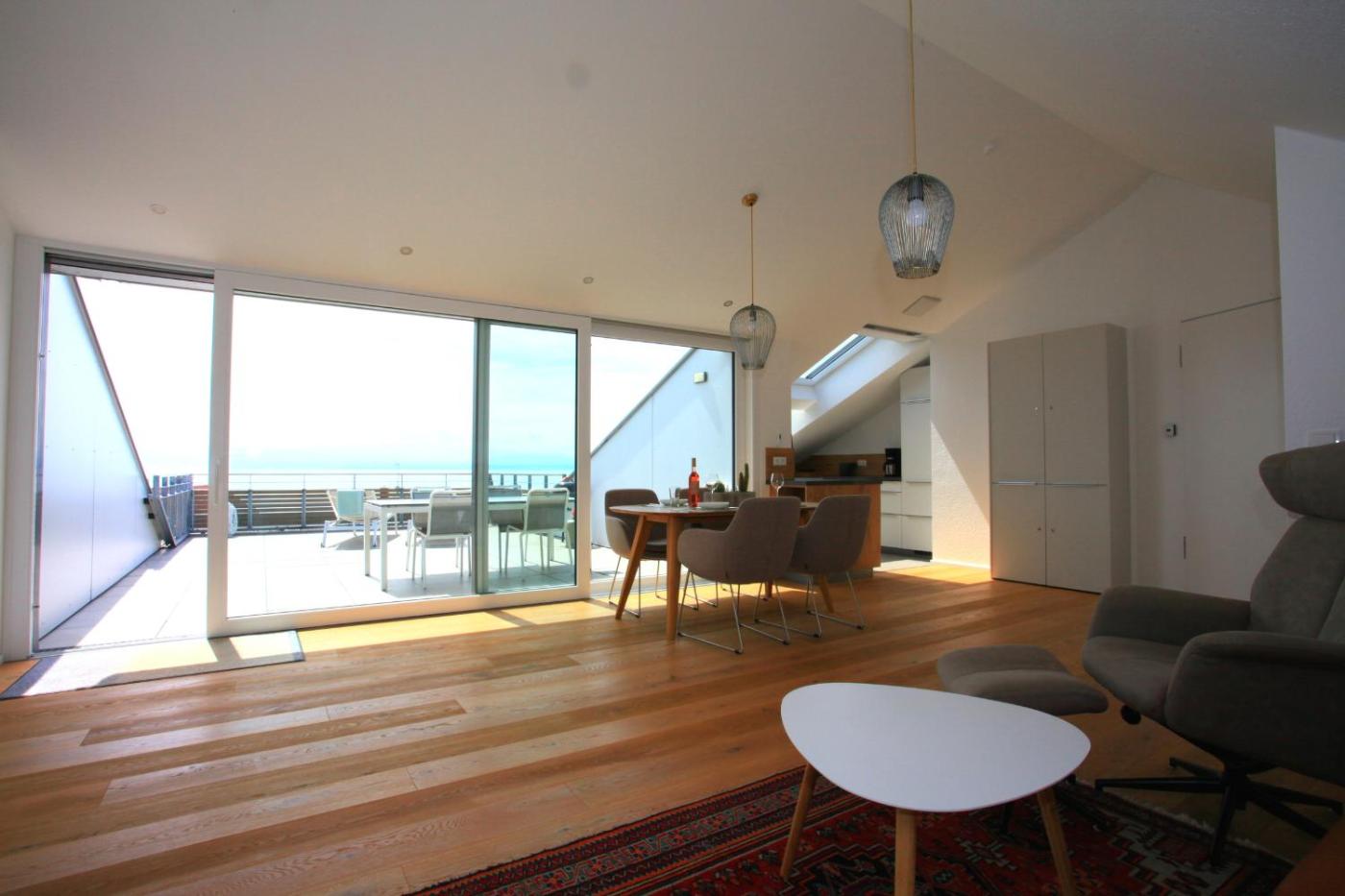 Penthouse-Apartment. This spacious apartment includes 1 living room, 1 separate bedroom and 1 bathroom with a bath and a shower. In the fully equipped kitchen, guests will find a stovetop, a refrigerator, a dishwasher and kitchenware. Boasting a terrace with lake views, this apartment also offers a washing machine and a TV. The unit has 2 beds.