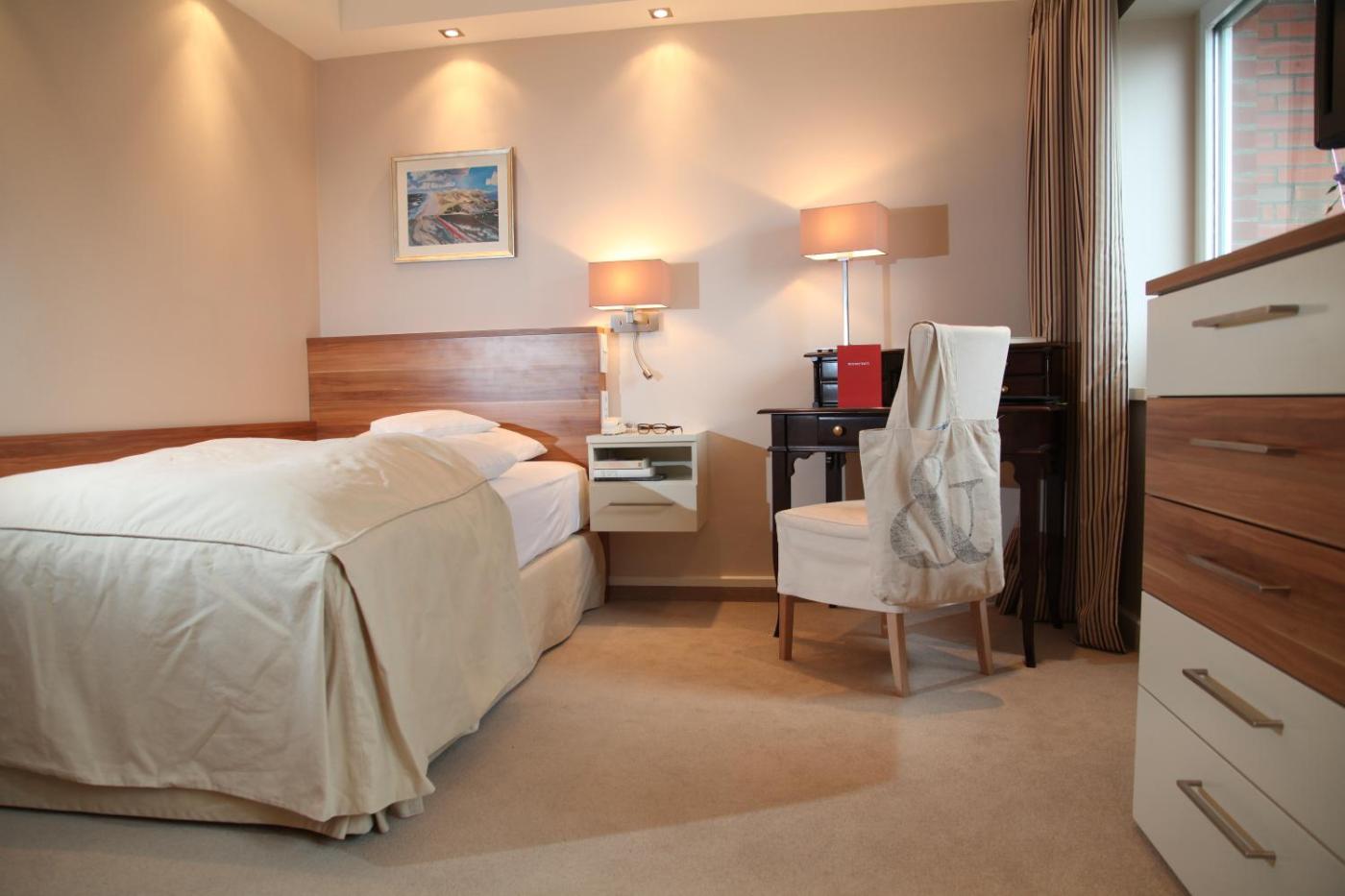 Einzelzimmer mit Dusche. Dieses Einzelzimmer bietet ein eigenes Bad mit einer Dusche, einem Haartrockner, Hausschuhen, kostenlosen Pflegeprodukten und Bademänteln. Die weitere Ausstattung des Einzelzimmers umfasst einen Kleiderschrank, einen Safe, Teppichboden, eine Heizung und einen Flachbild-TV. Die Wohneinheit ist mit 1 Bett ausgestattet.