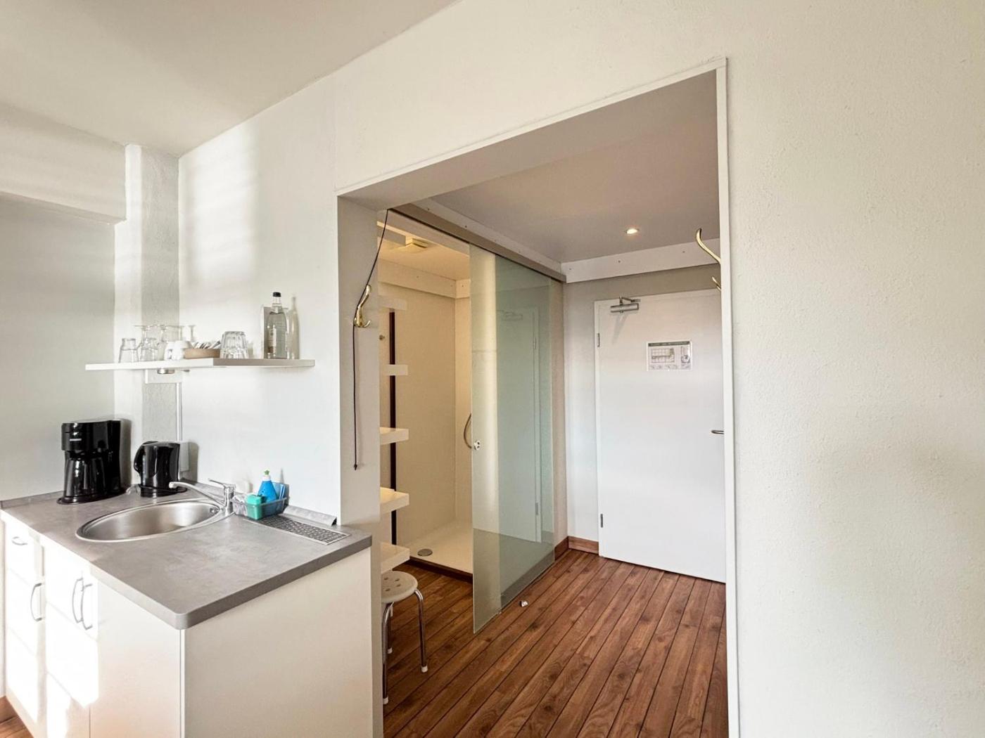 Apartment mit 1 Schlafzimmer. This apartment comprises a kitchen, a seating area, 1 separate bedroom and 1 bathroom with a shower and a hairdryer. Guests can make meals in the kitchen that comes with a stovetop, a refrigerator, kitchenware and a toaster. The apartment provides a coffee machine, a wardrobe, a safe deposit box, a sofa and a TV with satellite channels. The unit offers 1 bed.