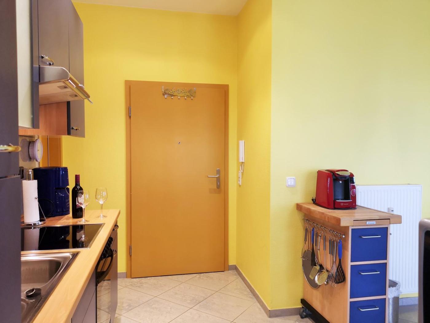 Apartment mit Meerblick. This apartment is comprised of 1 living room, 1 separate bedroom and 1 bathroom with a shower. Guests can make meals in the kitchen that is fitted with a stovetop, a refrigerator, a dishwasher and kitchenware. Featuring a balcony with sea views, this apartment also offers a coffee machine and a TV. The unit offers 2 beds.