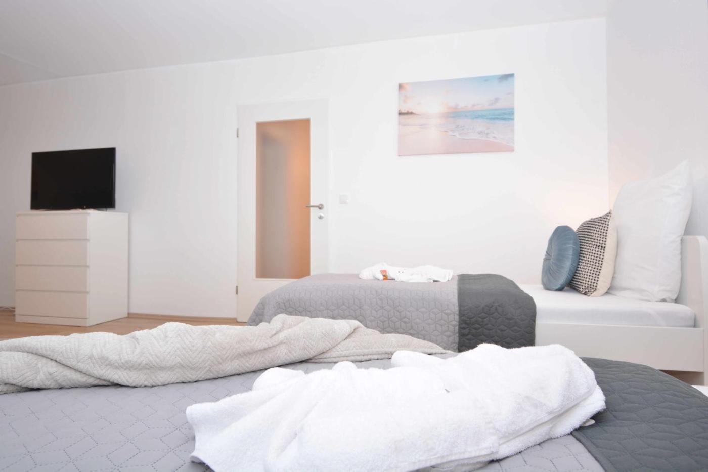 Apartment mit 3 Schlafzimmern. This spacious apartment consists of a kitchen, a seating area, 3 separate bedrooms and 1 bathroom with a bath and a shower. Meals can be prepared in the well-fitted kitchen, which is equipped with a stovetop, a refrigerator, a dishwasher and kitchenware. The apartment provides a washing machine, a coffee machine, a dining area, a flat-screen TV, as well as city views. The unit offers 6 beds.